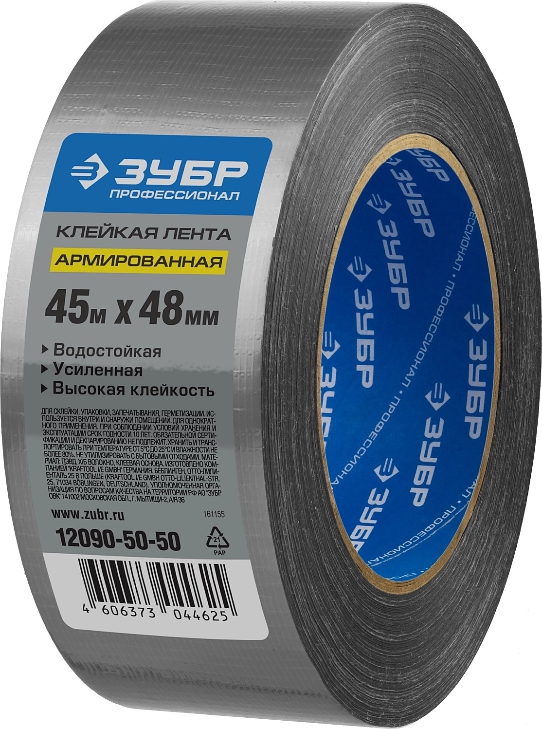 Универсальная армированная лента ЗУБР 48 мм 45 м серая на тканевой основе