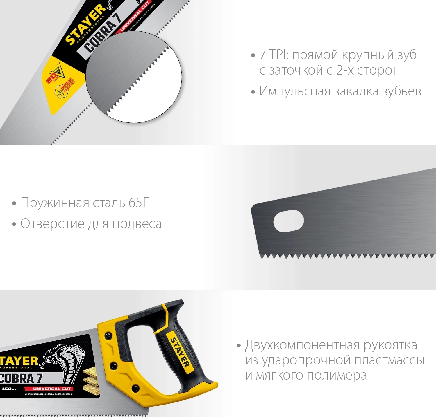 Универсальная ножовка Professional STAYER Cobra 7 450 мм