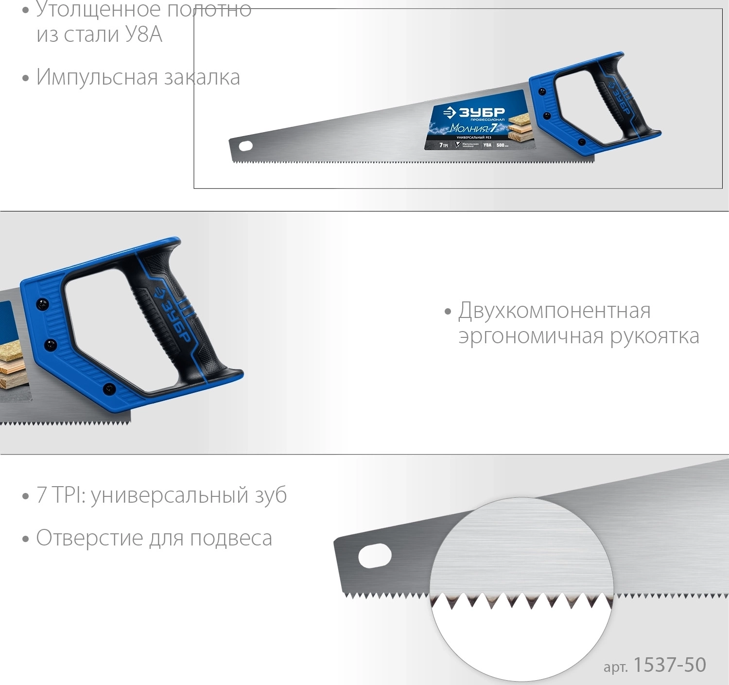 Универсальная ножовка ЗУБР Молния-7 500 мм 7TPI