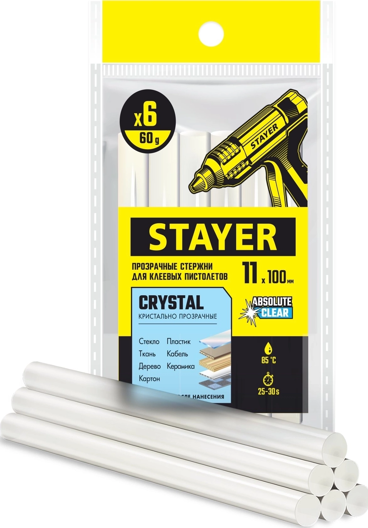 Универсальные клеевые стержни Professional STAYER Cristal, 1 х 100 мм, 6 шт, прозрачные