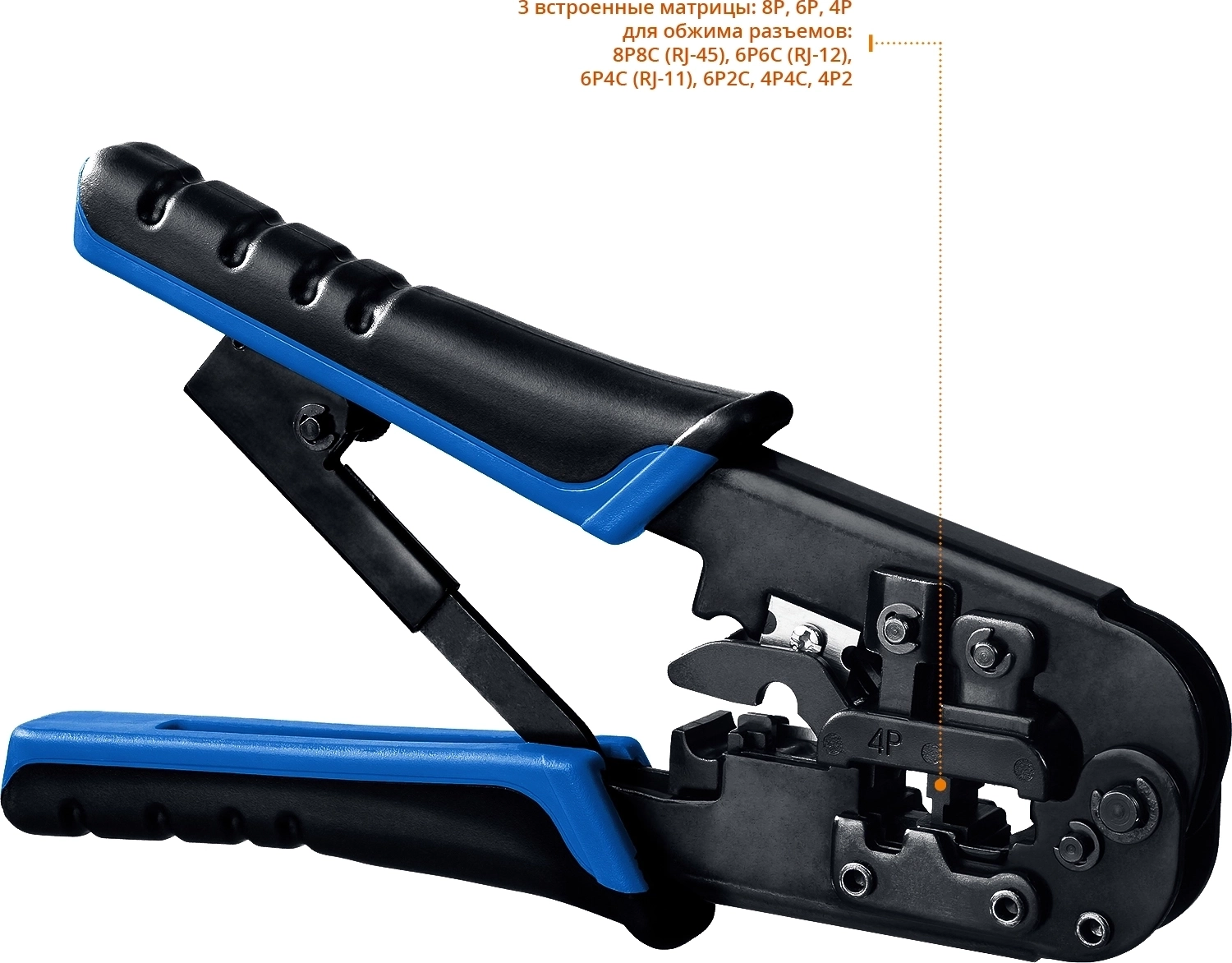 для обжима разъемов, снятия изоляции и обрезки кабеля.