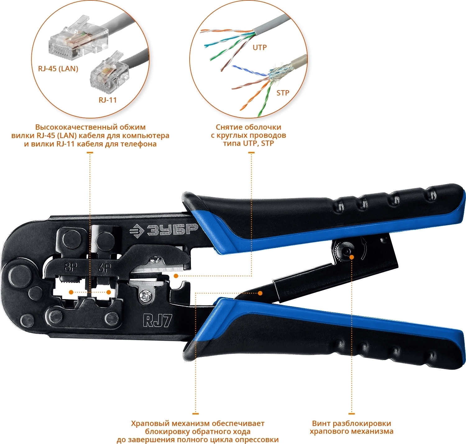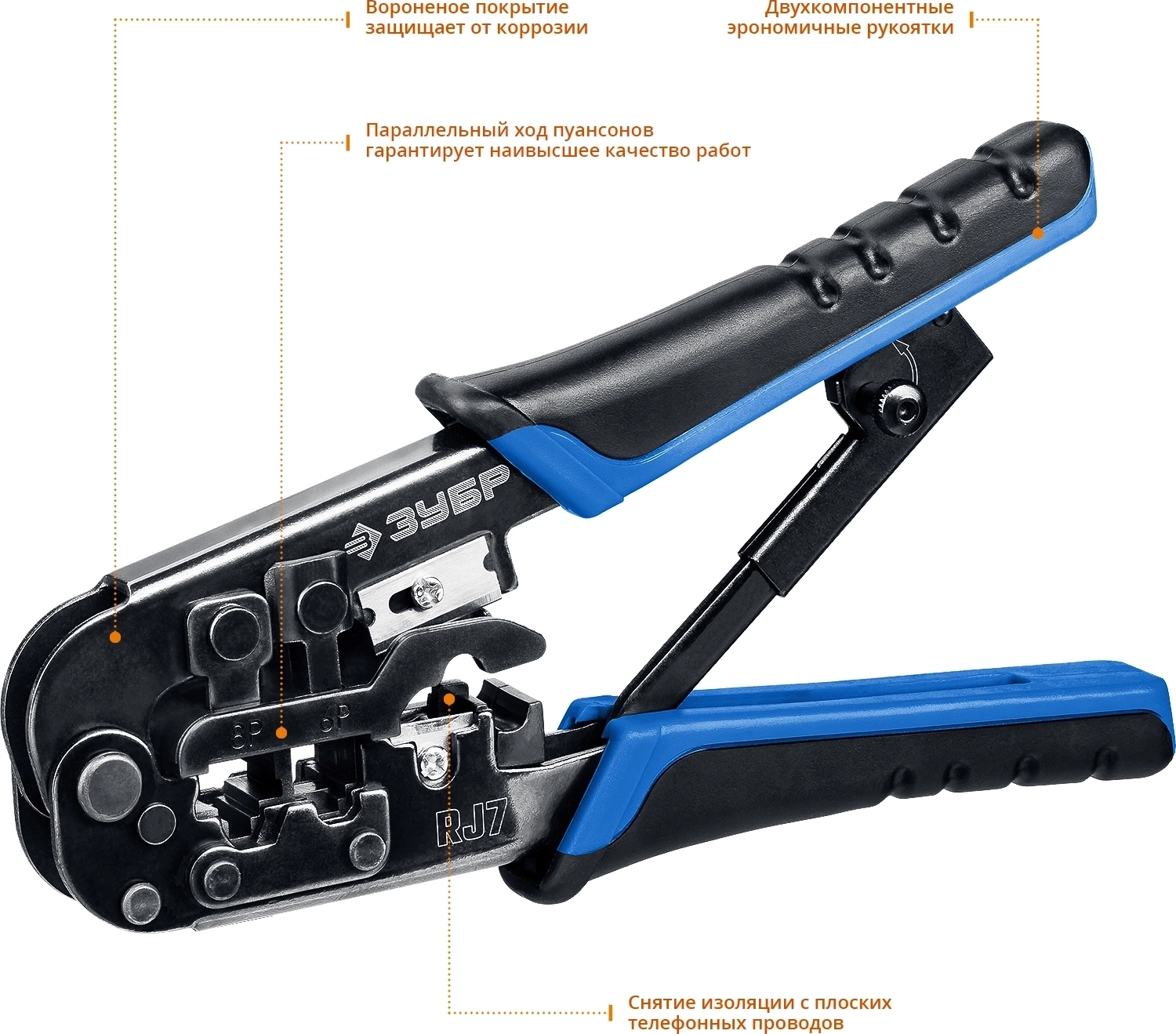 Универсальный кримпер ЗУБР RJ7 RJ45 RJ11 RJ12 203 мм