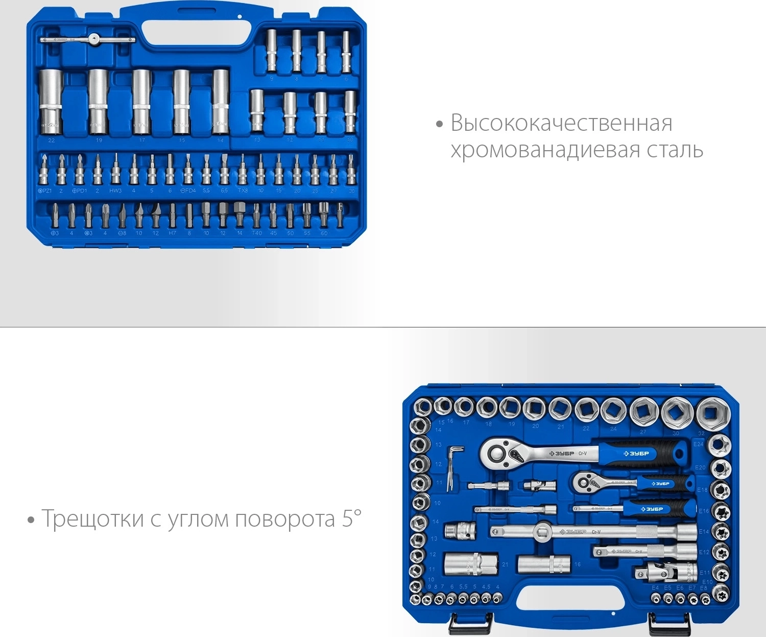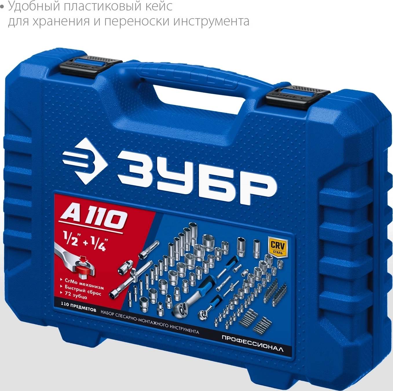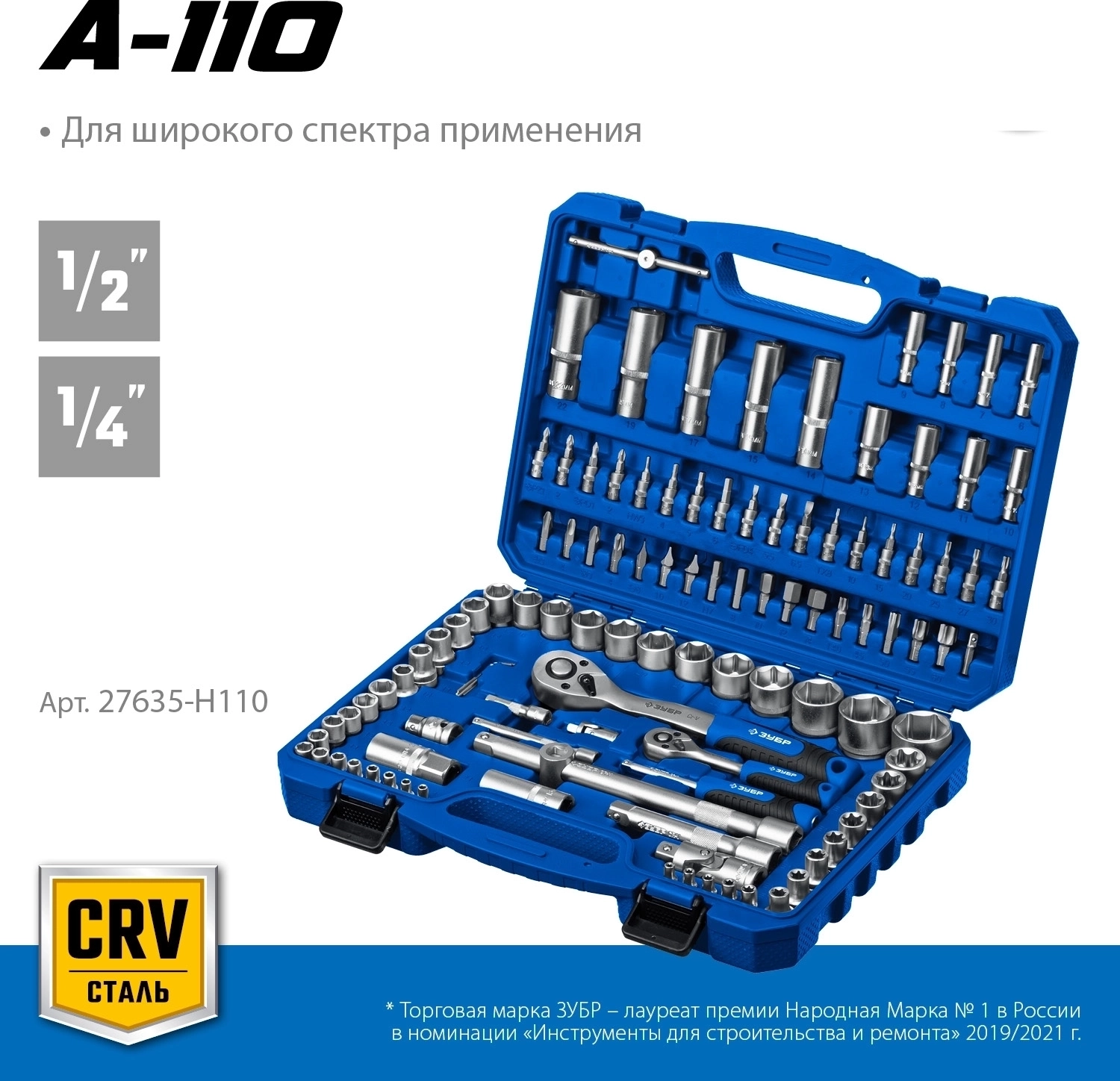 Универсальный набор инструмента ЗУБР А-110 110 предм. 1/2″ + 1/4″