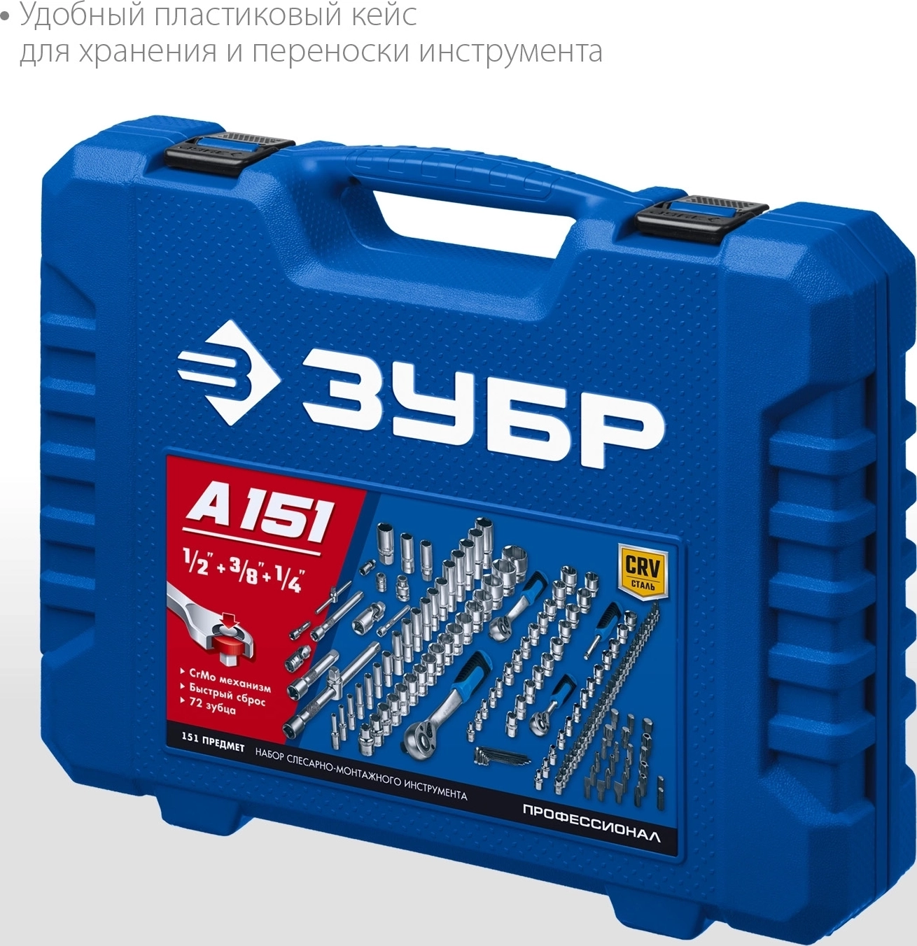 Универсальный набор инструмента ЗУБР А-151 151 предм. 1/2″+ 3/8″+ 1/4″