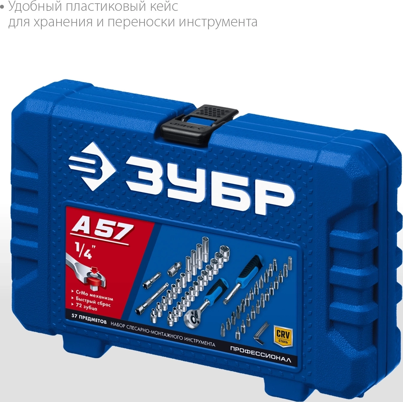 Универсальный набор инструмента ЗУБР А-57 57 предм. 1/4″