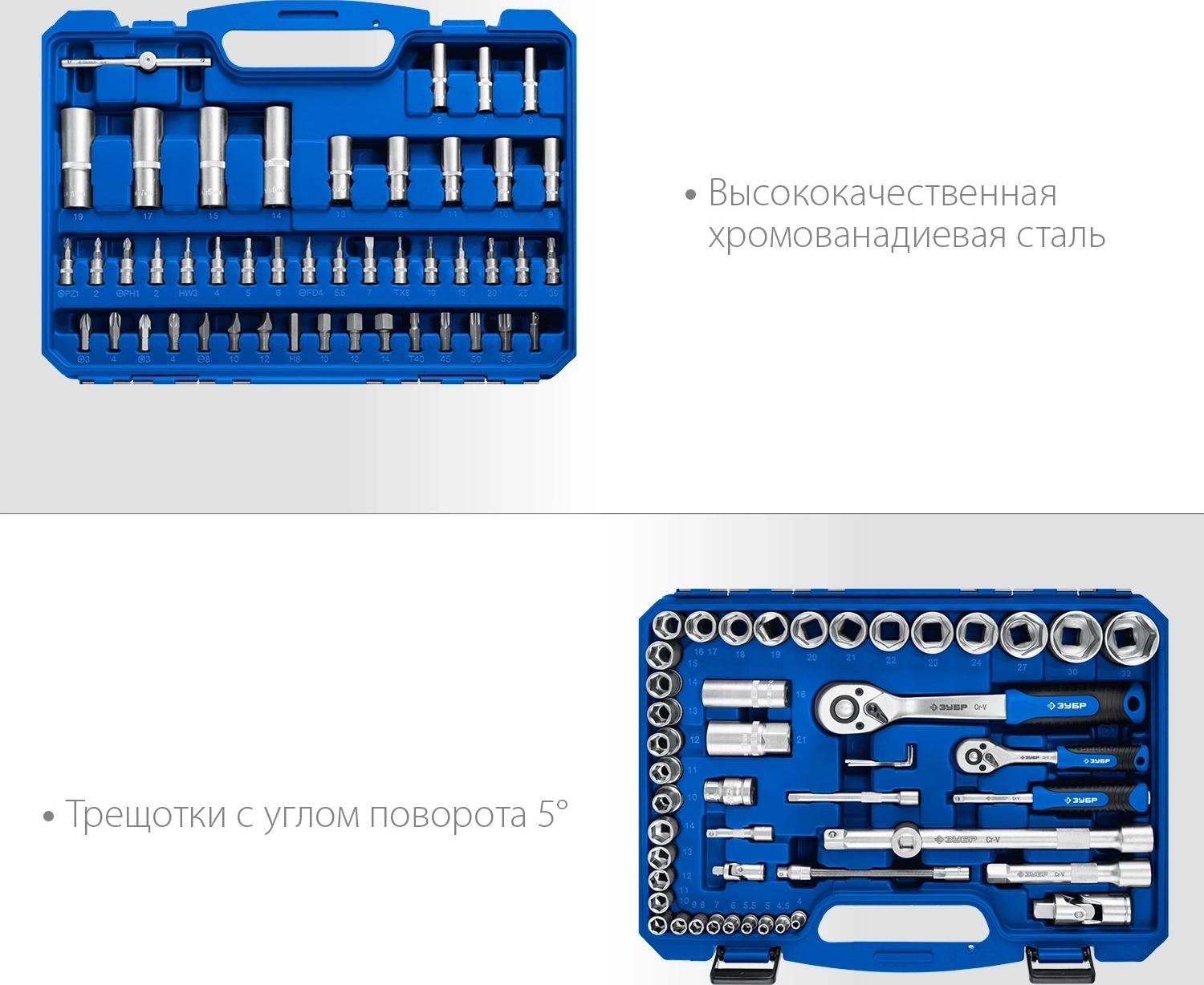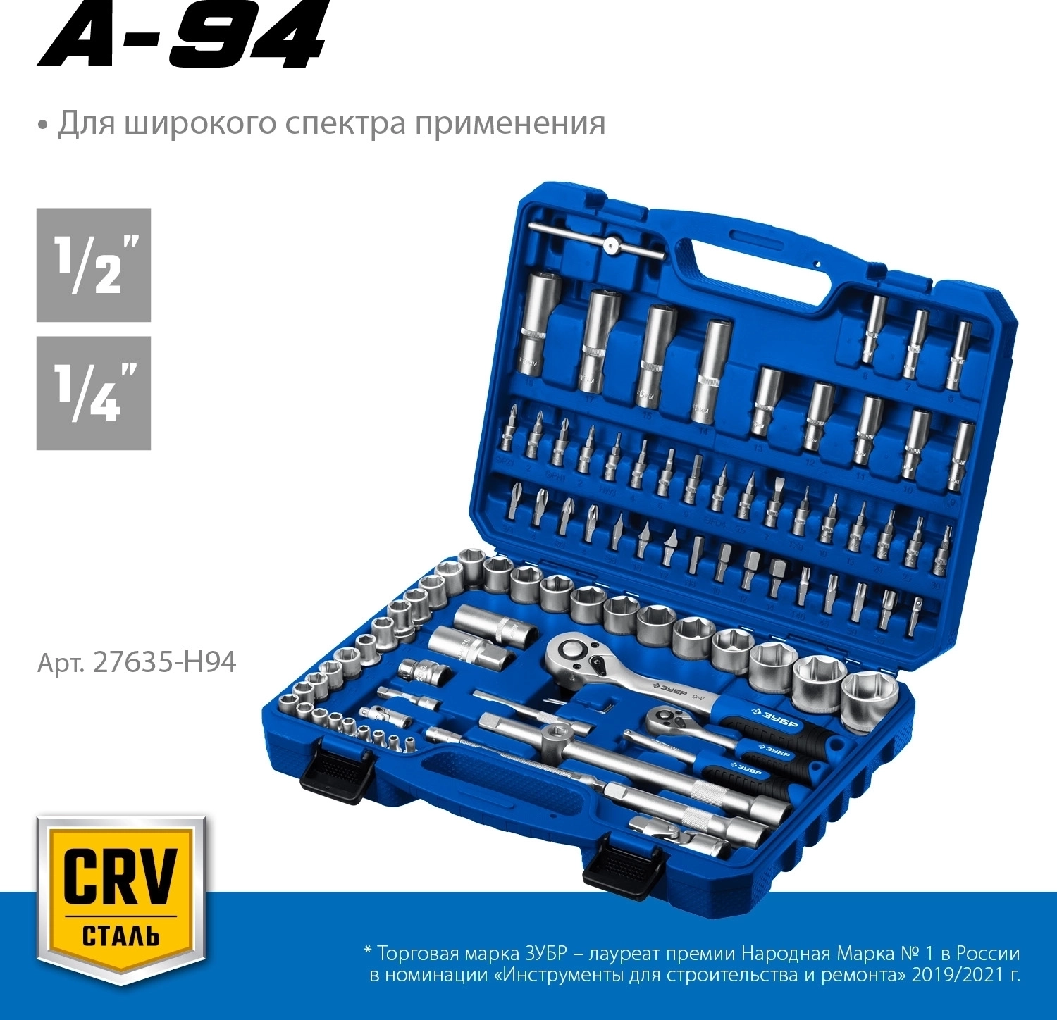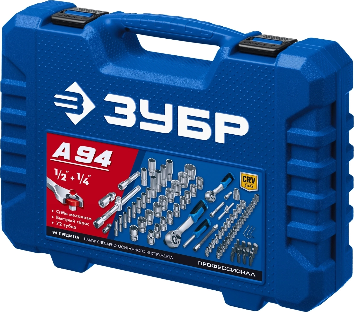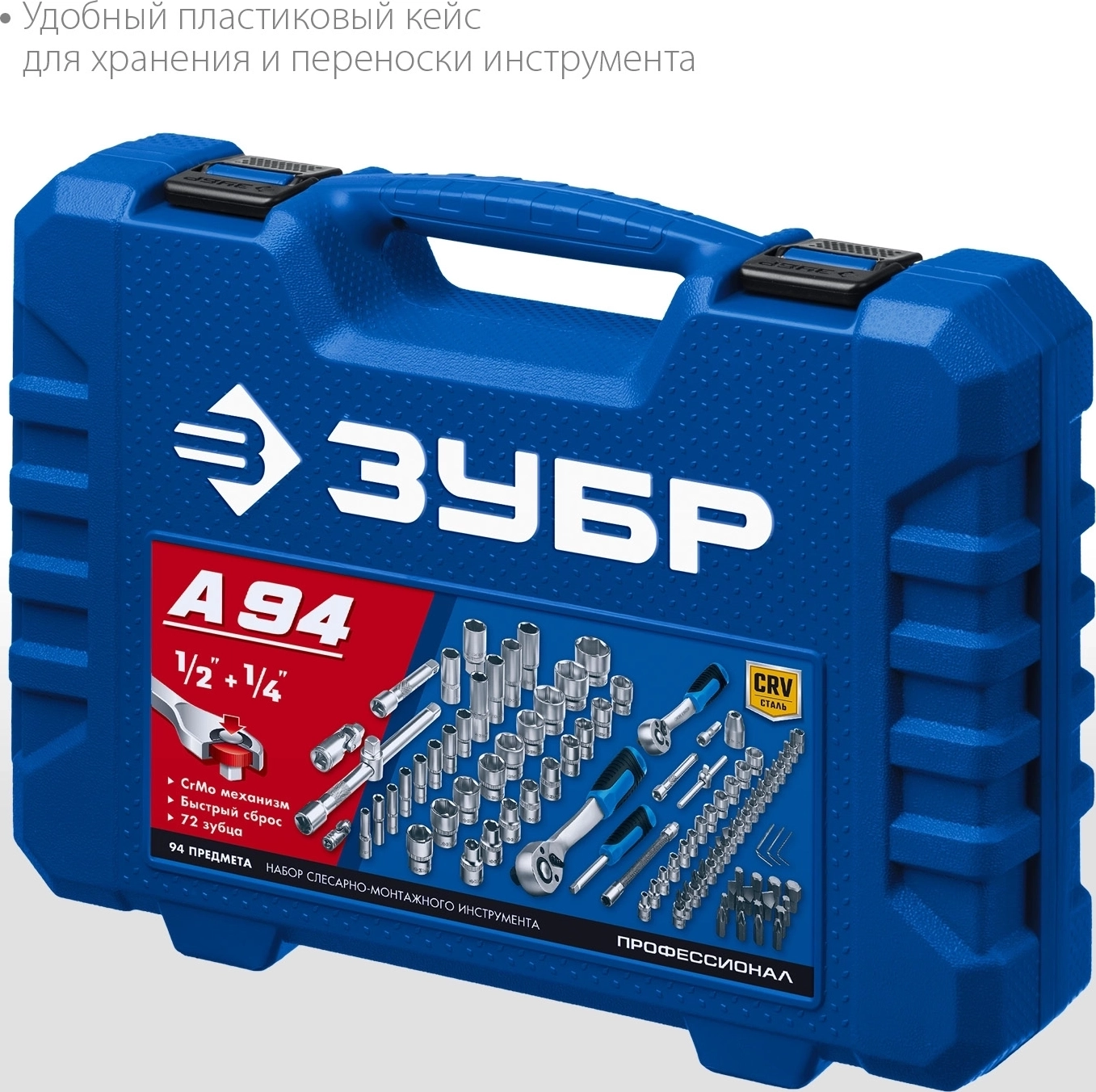 Универсальный набор инструмента ЗУБР А-94 94 предм. 1/2″ + 1/4″