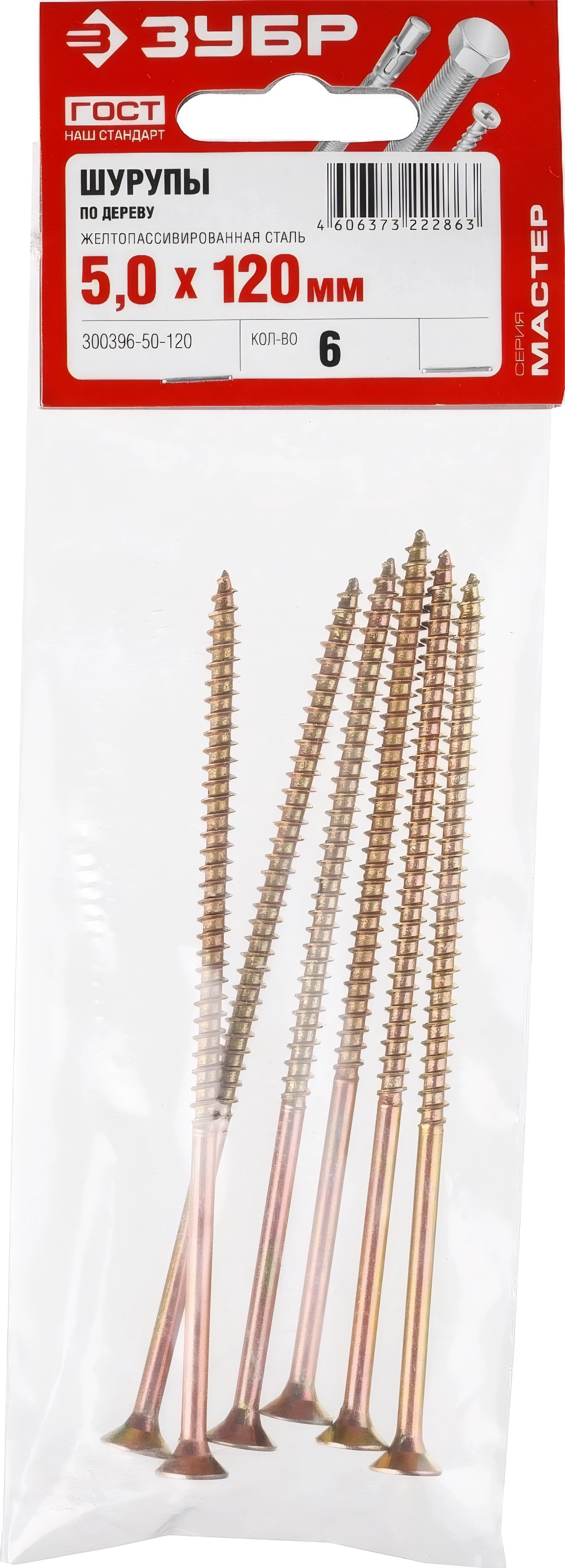 Универсальный саморез ЗУБР СУ-Ж, 120 х 5.0 мм, желтый цинк, 6 шт