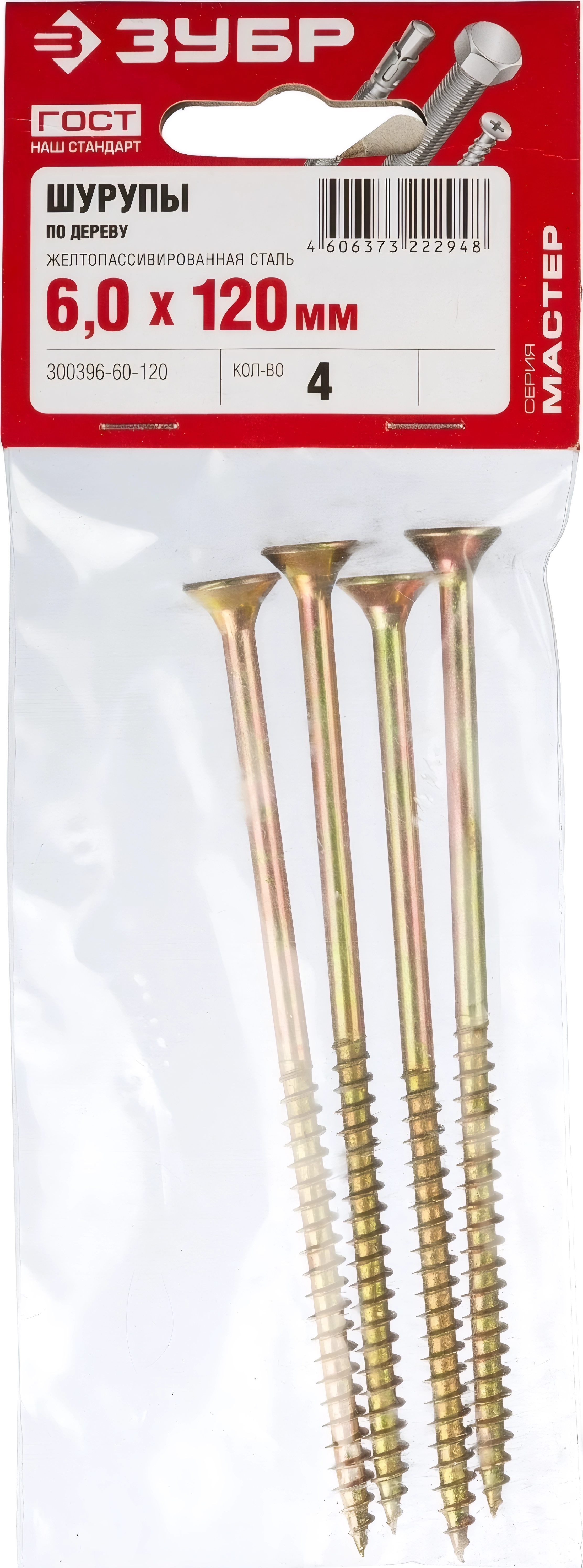 Универсальный саморез ЗУБР СУ-Ж, 120 х 6.0 мм, желтый цинк, 4 шт