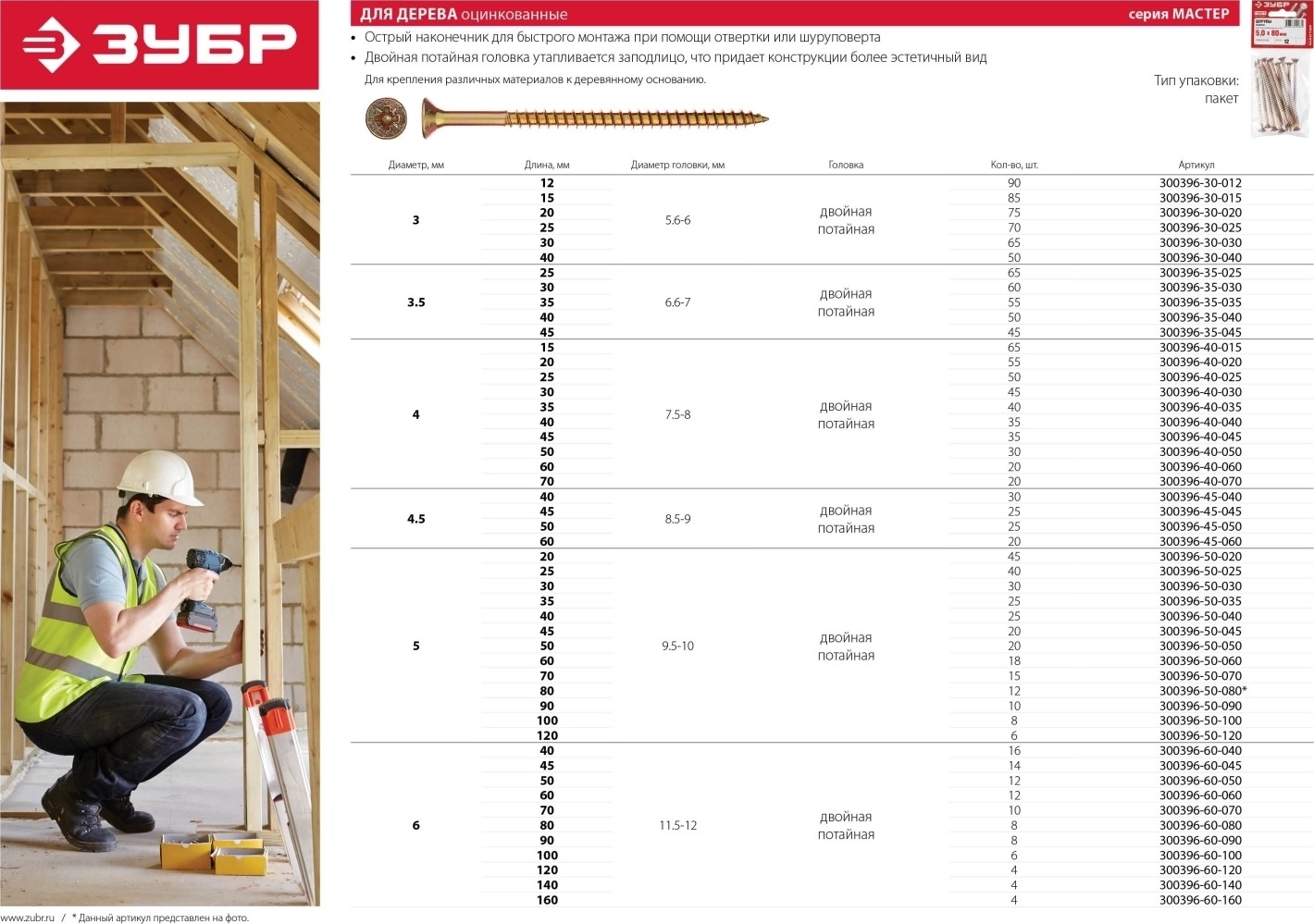 Для крепления деревянных конструкций. При работе с твердыми породами дерева (дуб, бук и т.п.) необходимо предварительное сверление.
