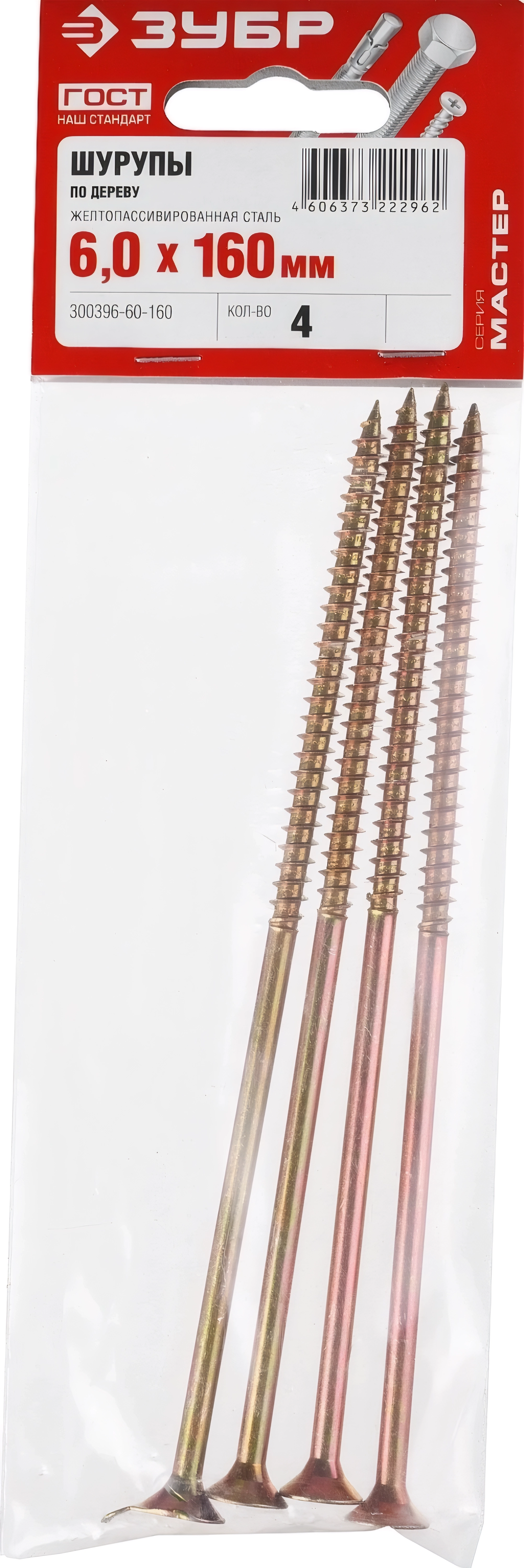 Универсальный саморез ЗУБР СУ-Ж, 160 х 6.0 мм, желтый цинк, 4 шт