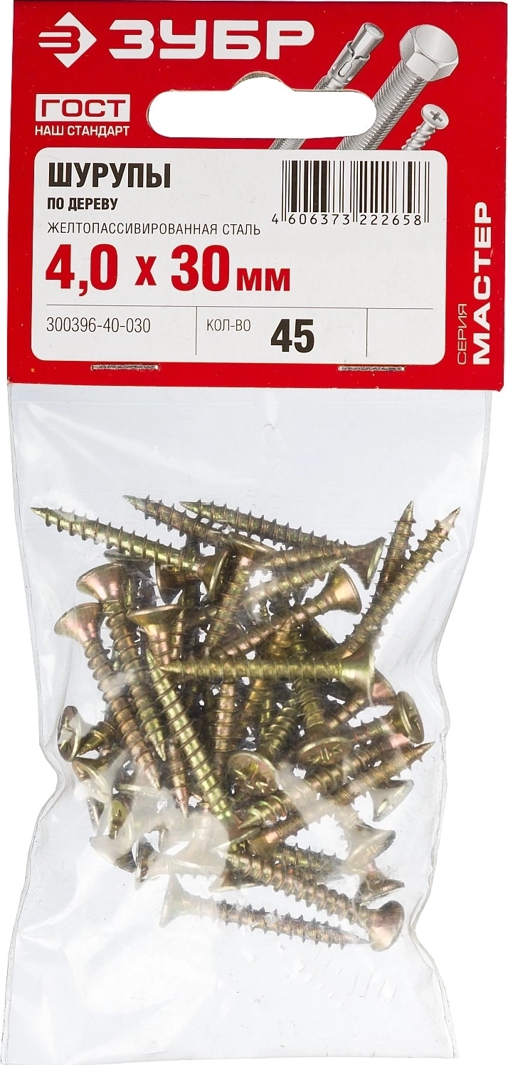Универсальный саморез ЗУБР СУ-Ж, 30 х 4.0 мм, желтый цинк, 45 шт