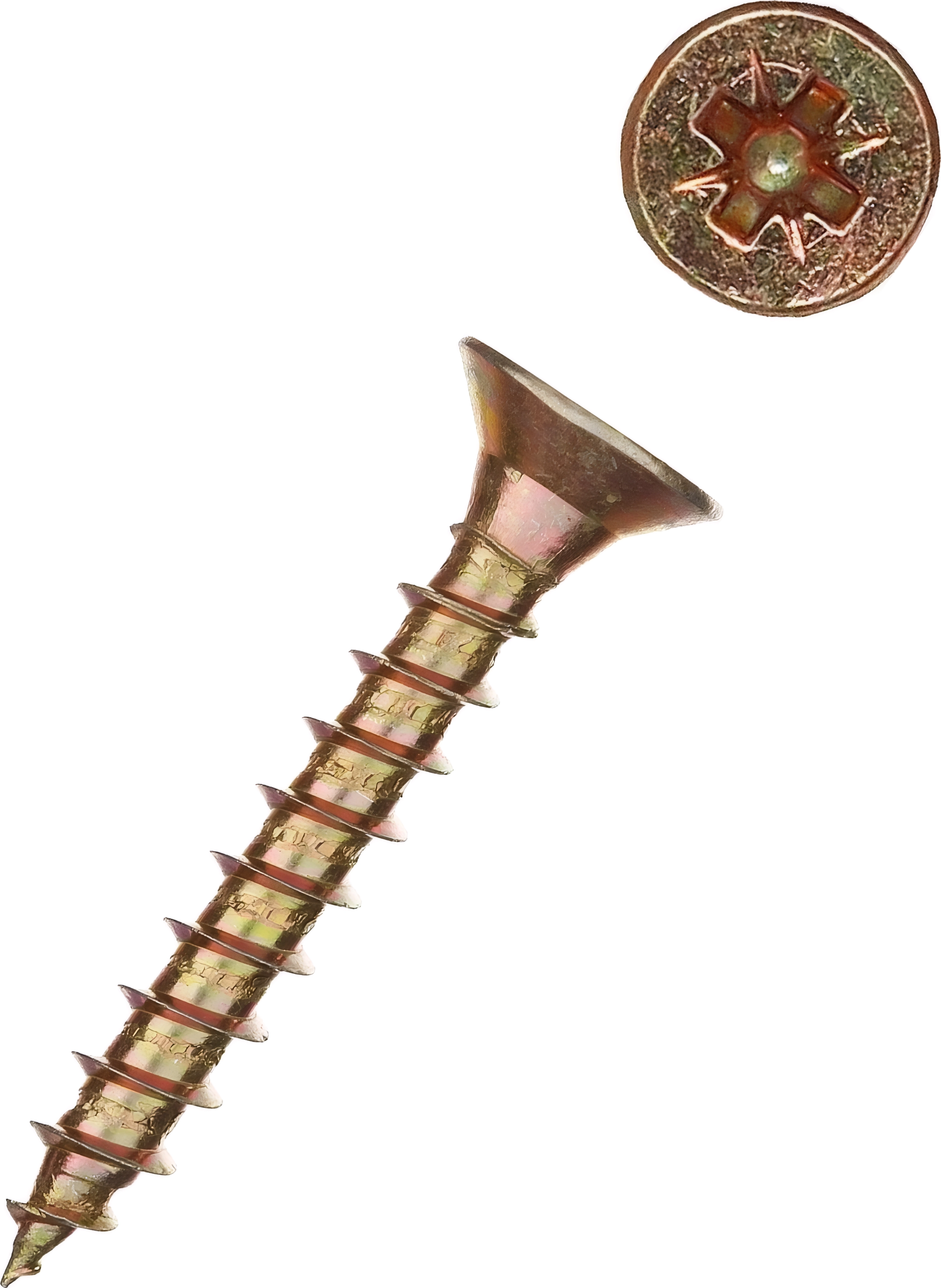 Саморезы универсальные изготовлены из стального прутка с высоким содержанием углерода. Контроль за геометрией самореза начинается с калибровки прутка и заканчивается тщательной проверкой размеров готового изделия. Нормативная твердость стали достигается термической обработкой. Поверхностная твердость 550-800HV, твердость в сердцевине мин. 320HV. Саморезы легко вкручиваются обычным шуруповертом или отверткой. Предварительное сверление в скрепляемых материалах не требуется.