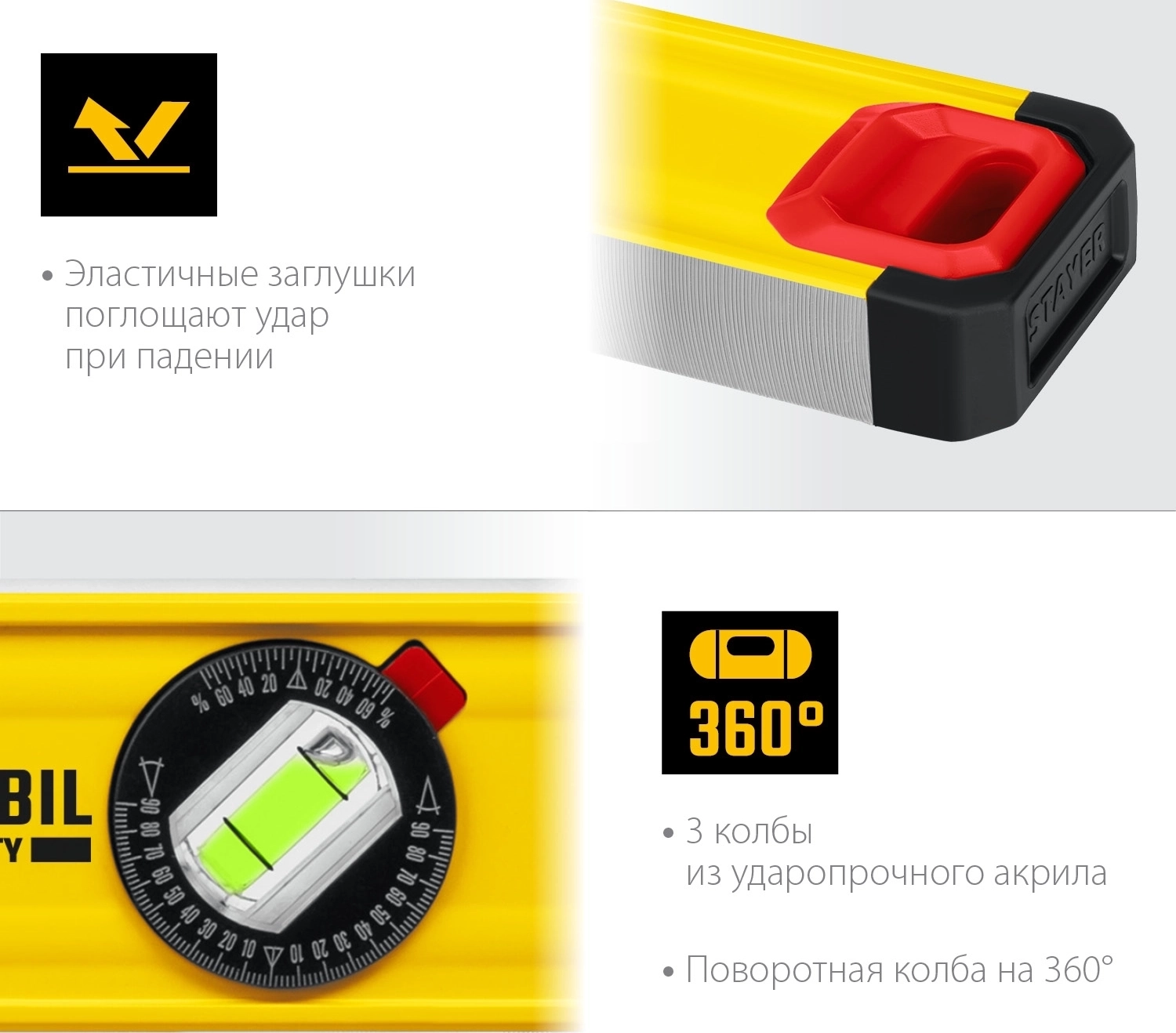Уровень с поворотным глазком Professional STAYER PRO STABIL 400 мм усиленный профиль