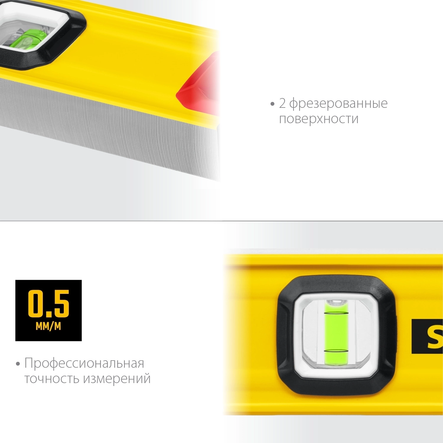 Строительный уровень с двумя фрезерованными поверхностями и увеличенной точностью 0.5 мм/м