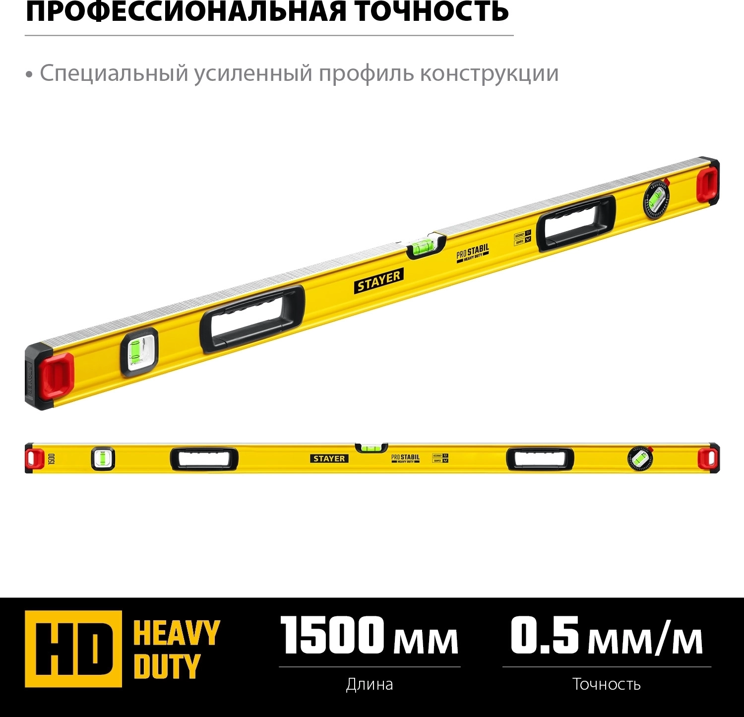 Уровень с поворотным глазком Professional STAYER PRO STABIL 1500 мм усиленный профиль