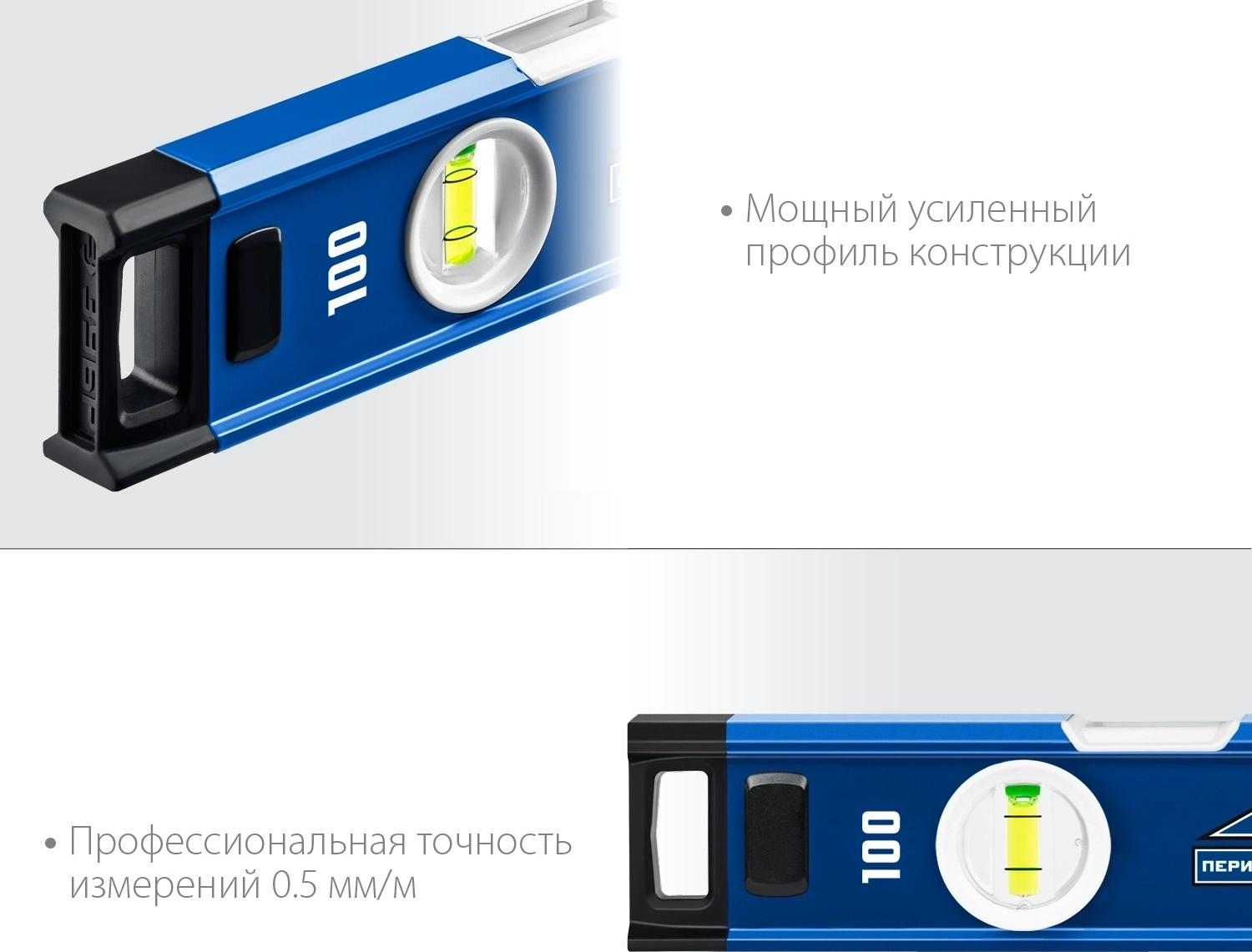 Мощный уровень с удобными рукоятками и фрезерованной базовой поверхностью