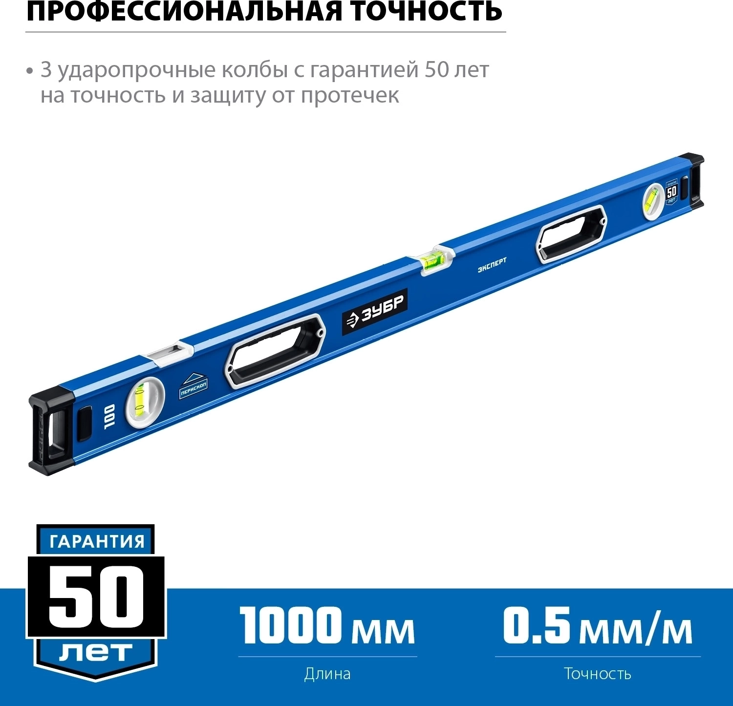 Уровень с усиленным профилем ЗУБР 1000 мм с зеркальным глазком