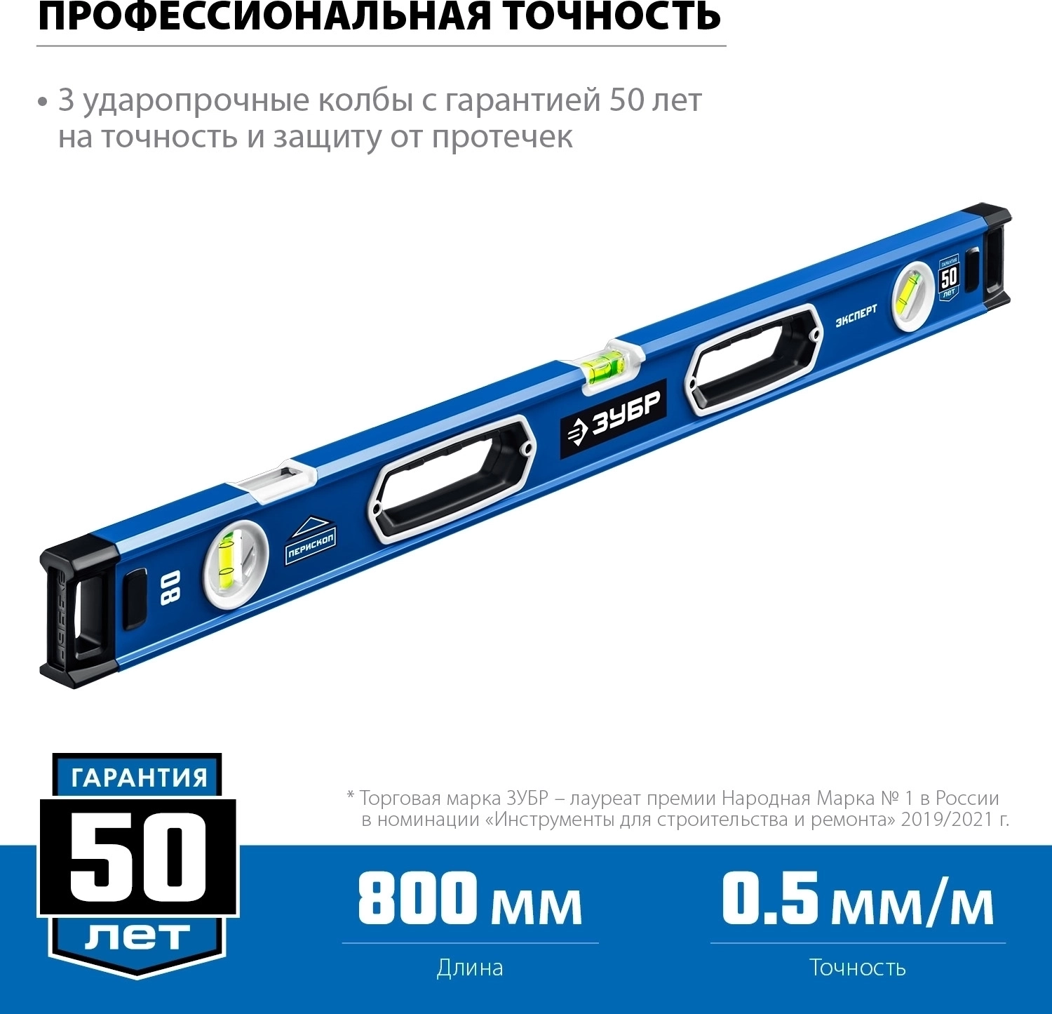 Уровень с усиленным профилем ЗУБР 800 мм с зеркальным глазком