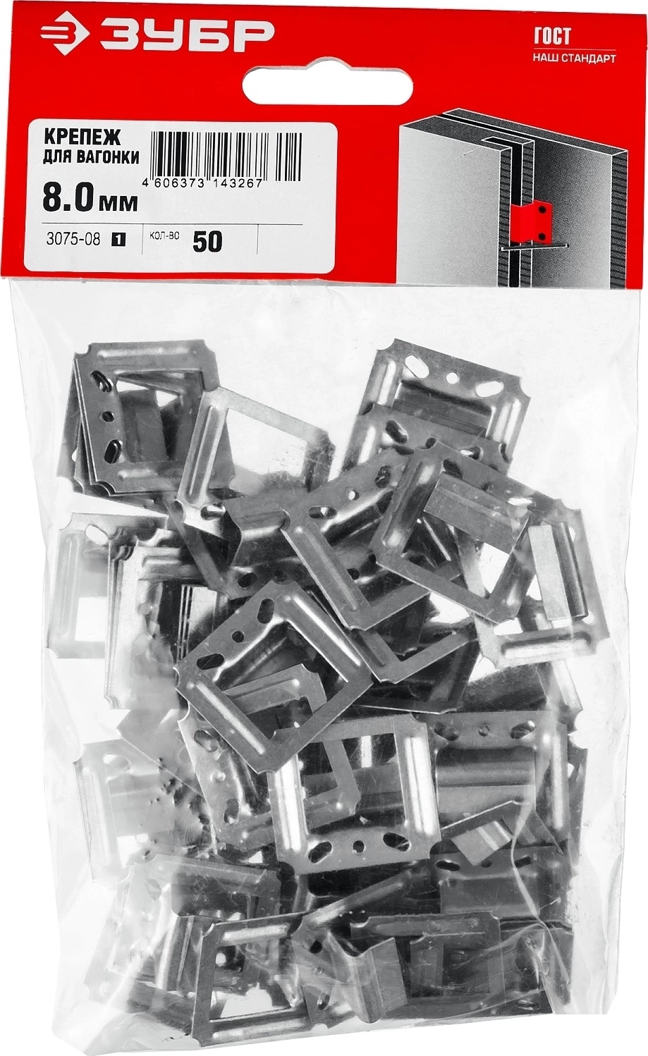 Усиленный крепеж для вагонки блок хауса имитации бруса ЗУБР Кляймер-У, 8 мм, цинк, 50 шт