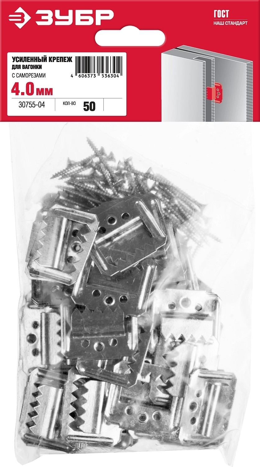 Усиленный крепеж для вагонки с саморезами ЗУБР Кляймер-У2, 4 мм, 50 шт