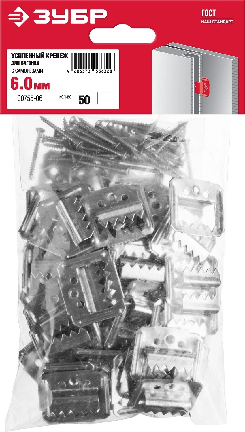 Усиленный крепеж для вагонки с саморезами ЗУБР Кляймер-У2, 6 мм, 50 шт
