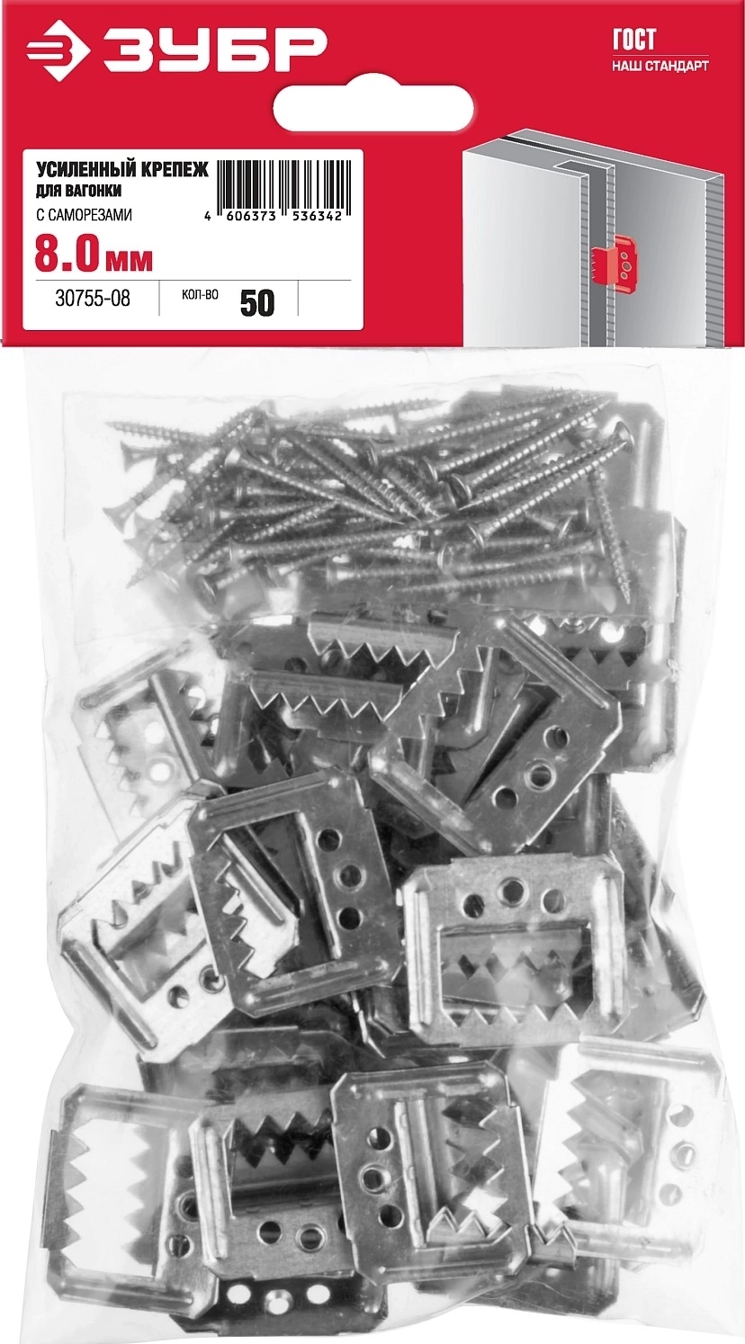Усиленный крепеж для вагонки с саморезами ЗУБР Кляймер-У2, 8 мм, 50 шт