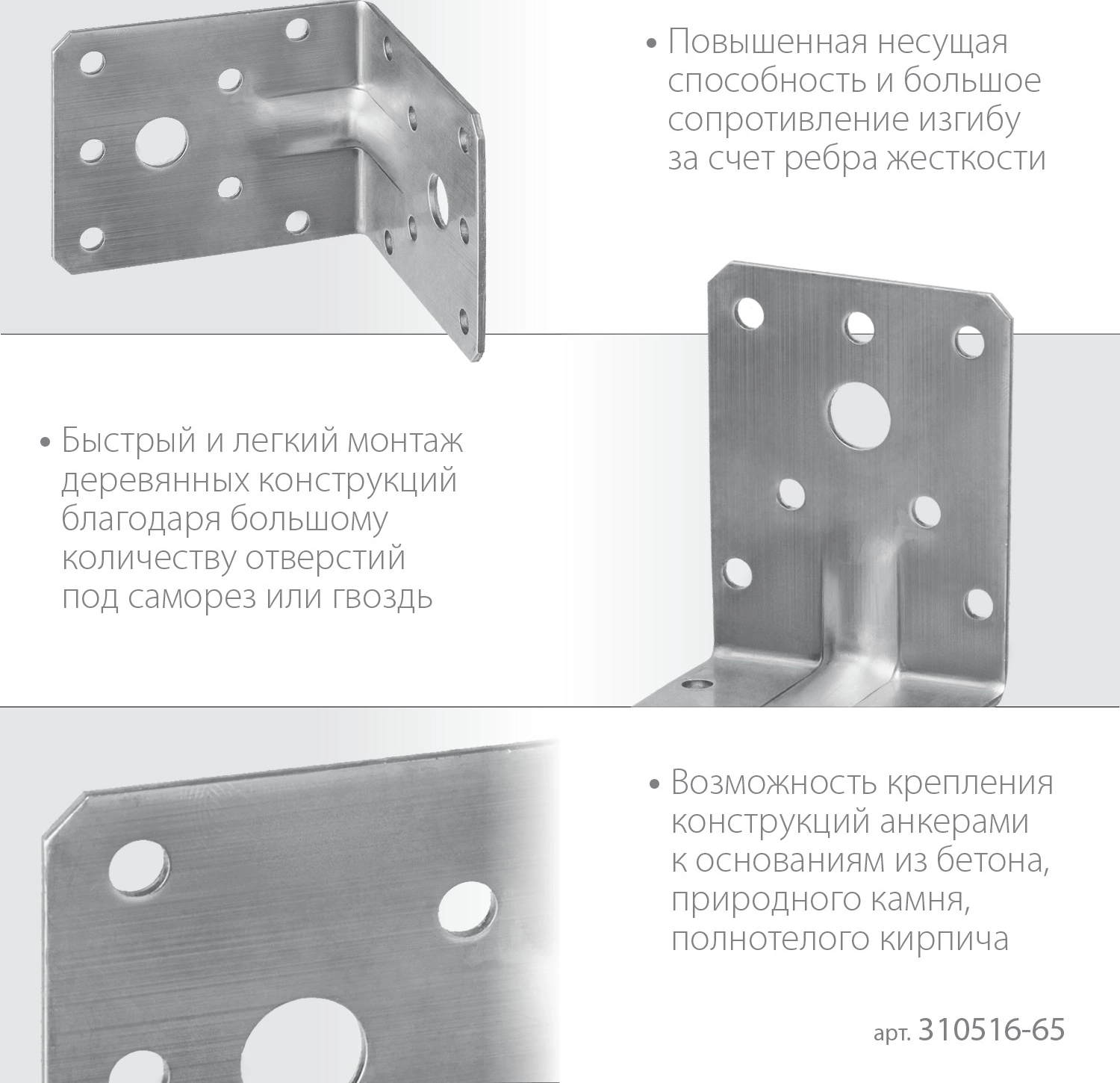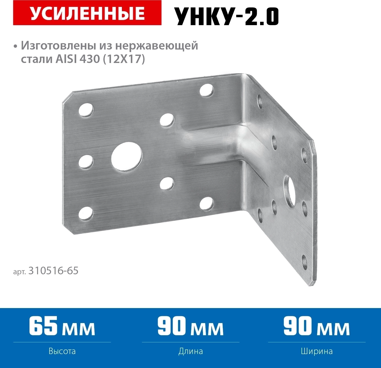 Усиленный нержавеющий крепежный уголок ЗУБР УНКУ-2.0 65 x 90 x 90 x 2 мм