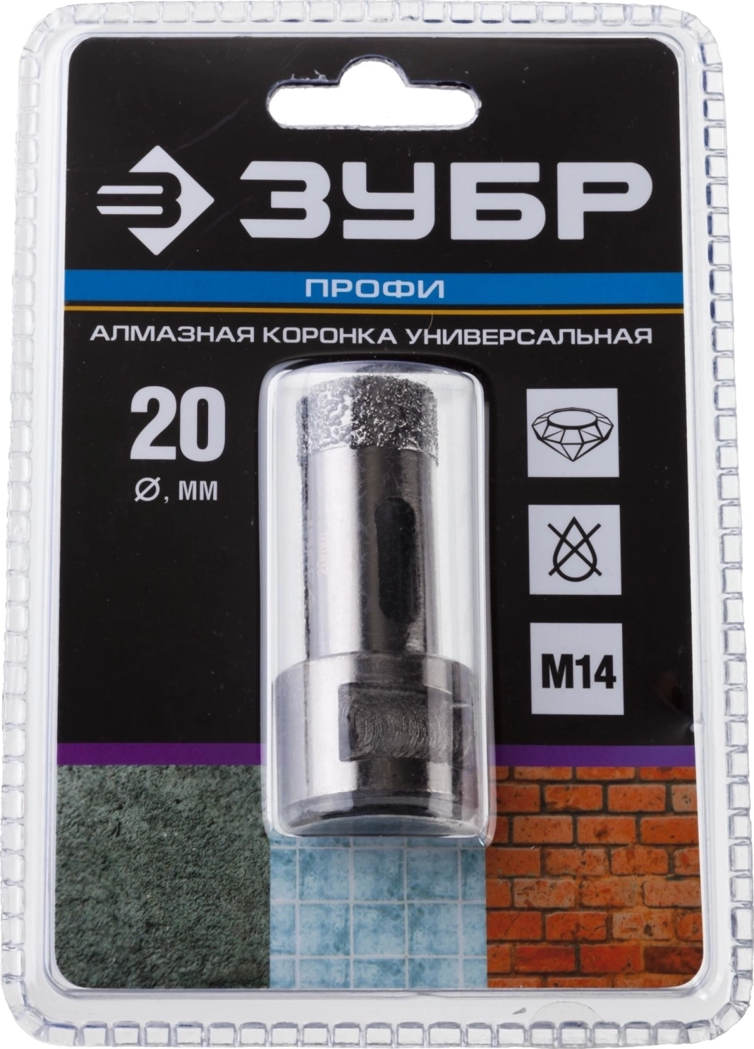 Вакуумная алмазная коронка ЗУБР АВК d 20 мм М14 15 мм кромка