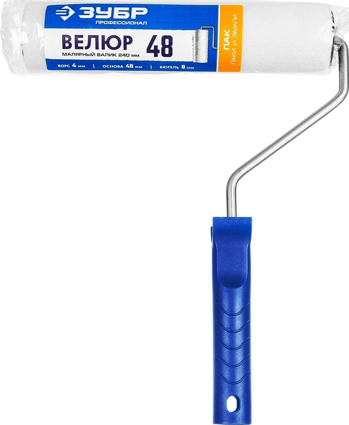 Малярный ролик ВЕЛЮР 8 х 240 мм бюгель 8 мм ворс 4 мм 100% шерсть для лаков и эмалей арт. 99805