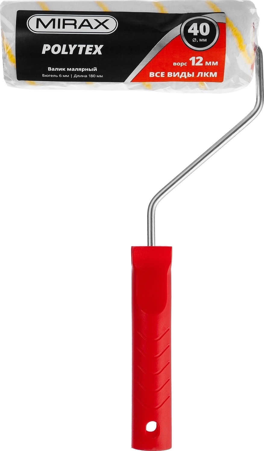 Малярный валик POLYTEX, 40 х 180 мм, бюгель 6 мм, ворс 12 мм, полиакрил/полиэстер, все виды ЛКМ арт. 99791