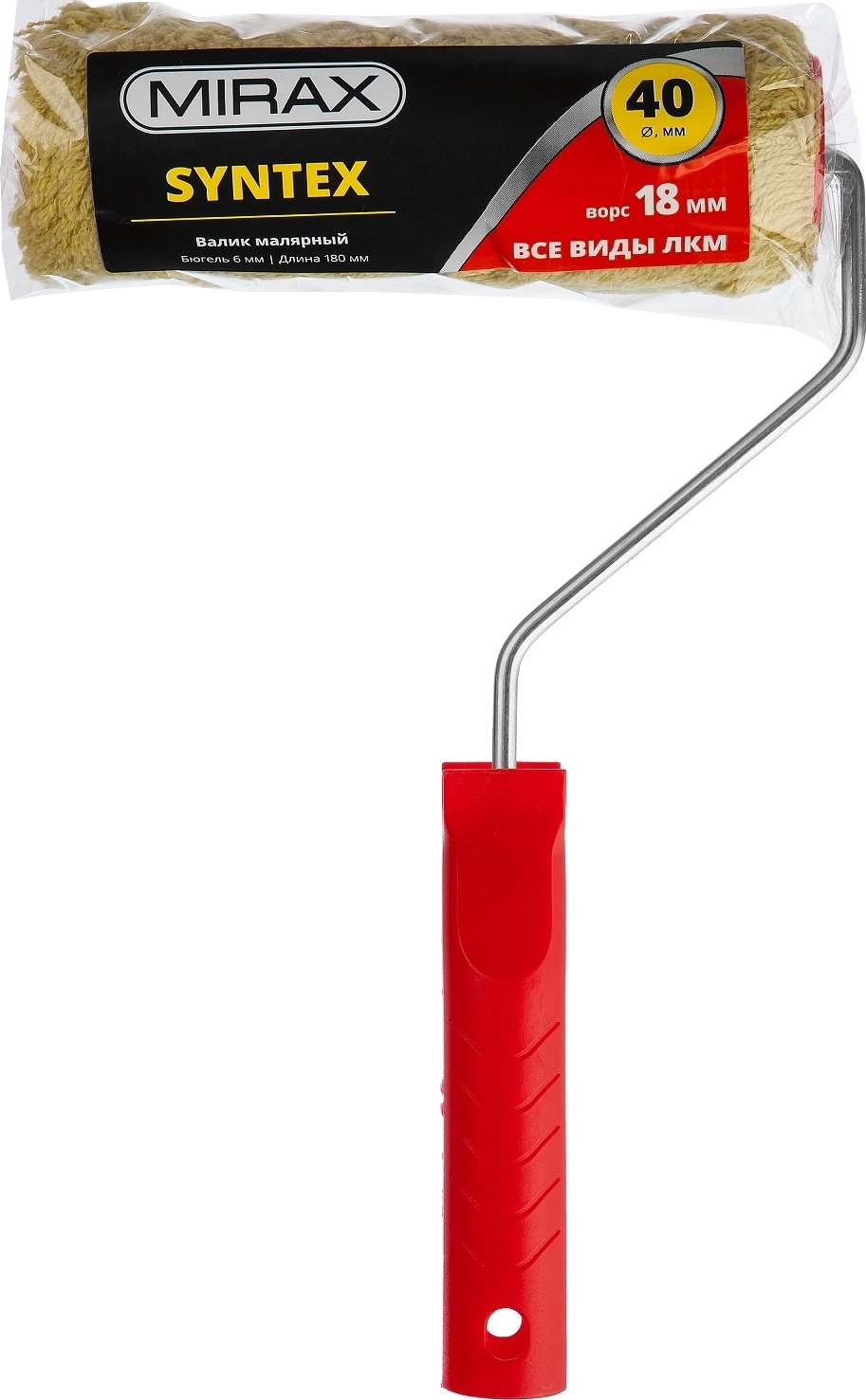 Малярный валик SYNTEX, 40 х 180 мм, бюгель 6 мм, ворс 18 мм, полиакрил/полиэстер, все виды ЛКМ арт. 99789