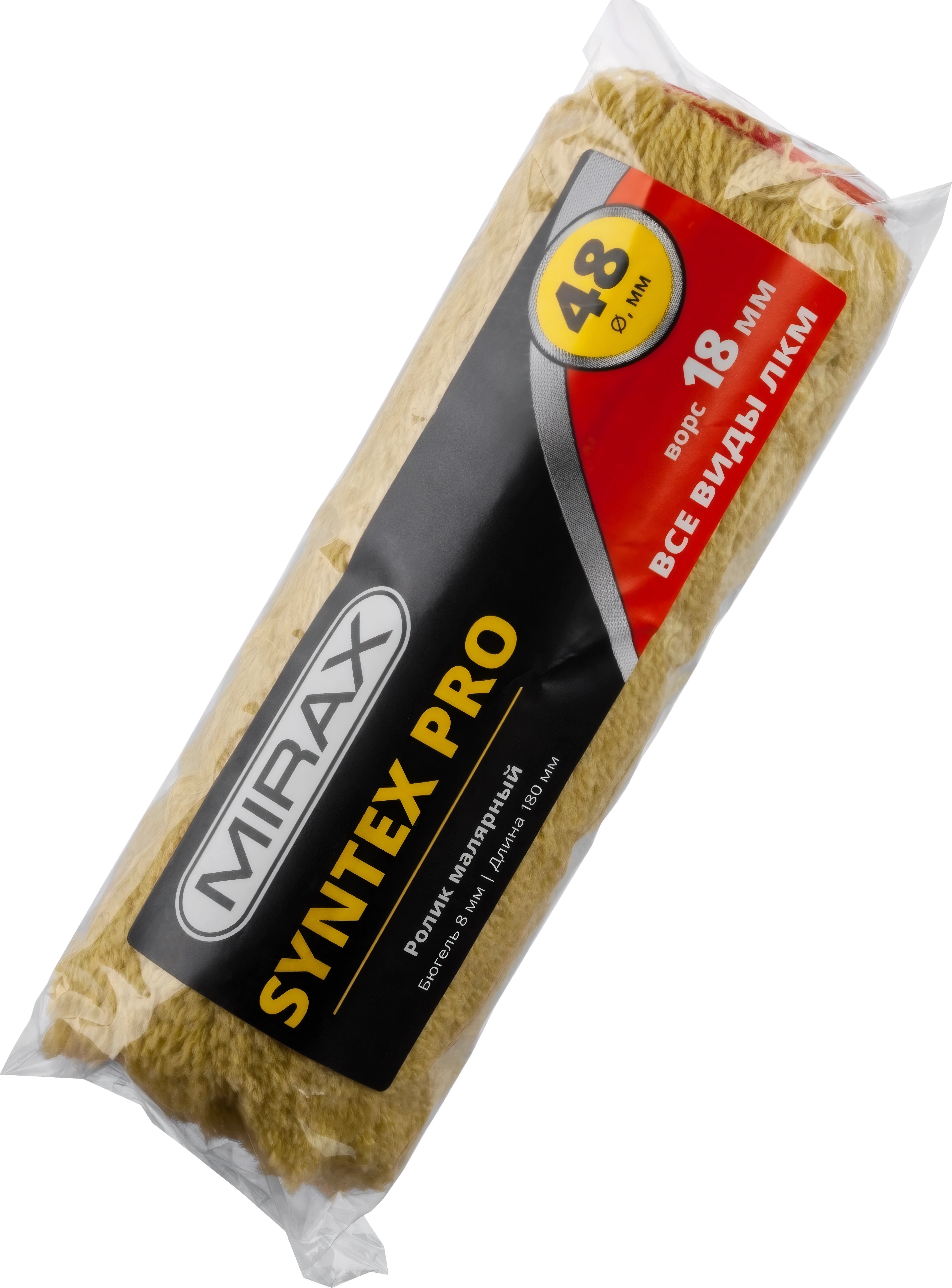 Малярный ролик SYNTEX PRO, 48 х 180 мм, бюгель 8 мм, ворс 18 мм, полиакрил/полиэстер, все виды ЛКМ арт. 111051