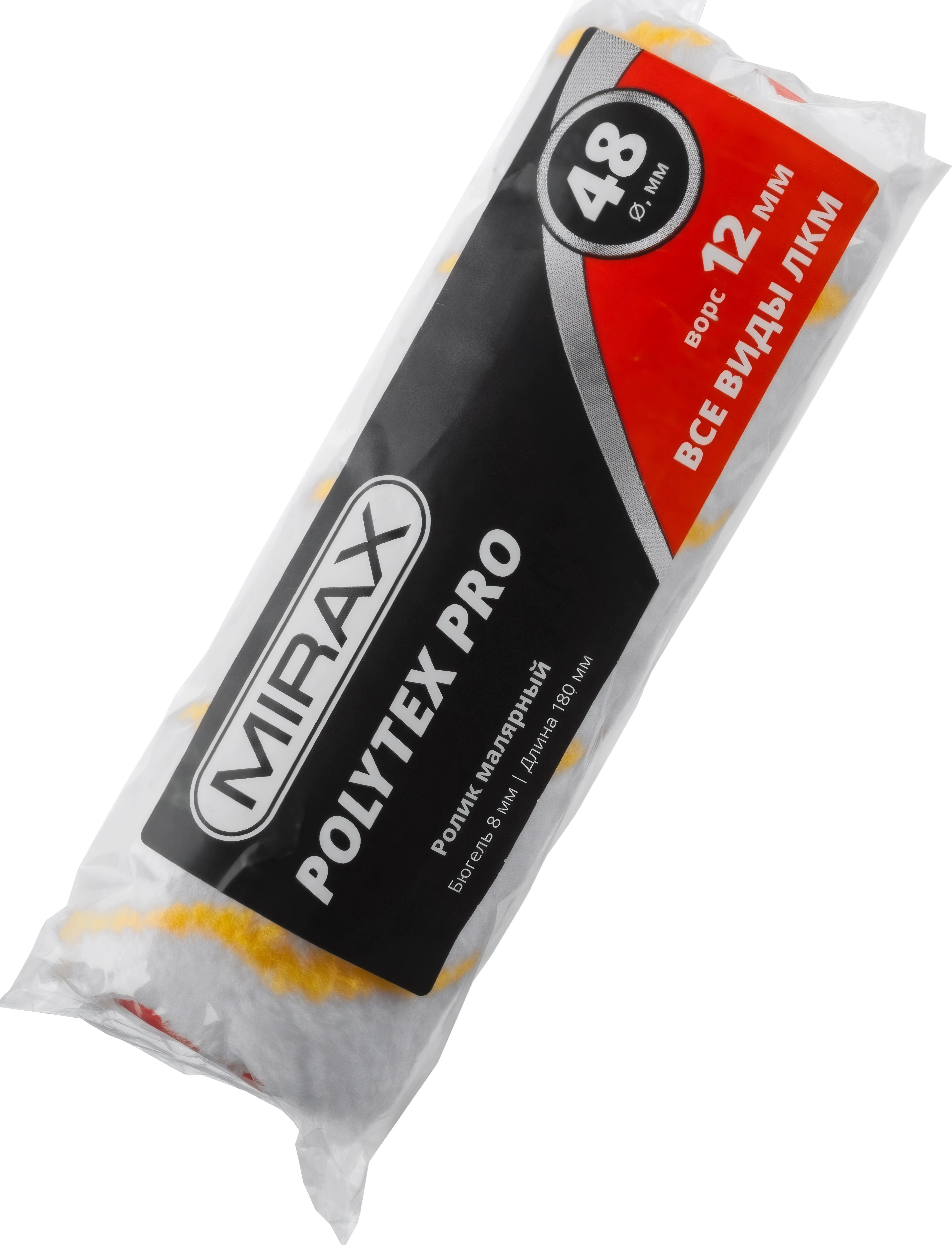 Малярный ролик POLYTEX PRO, 48 х 180 мм, бюгель 8 мм, ворс 12 мм, полиакрил/полиэстер, все виды ... арт. 111053