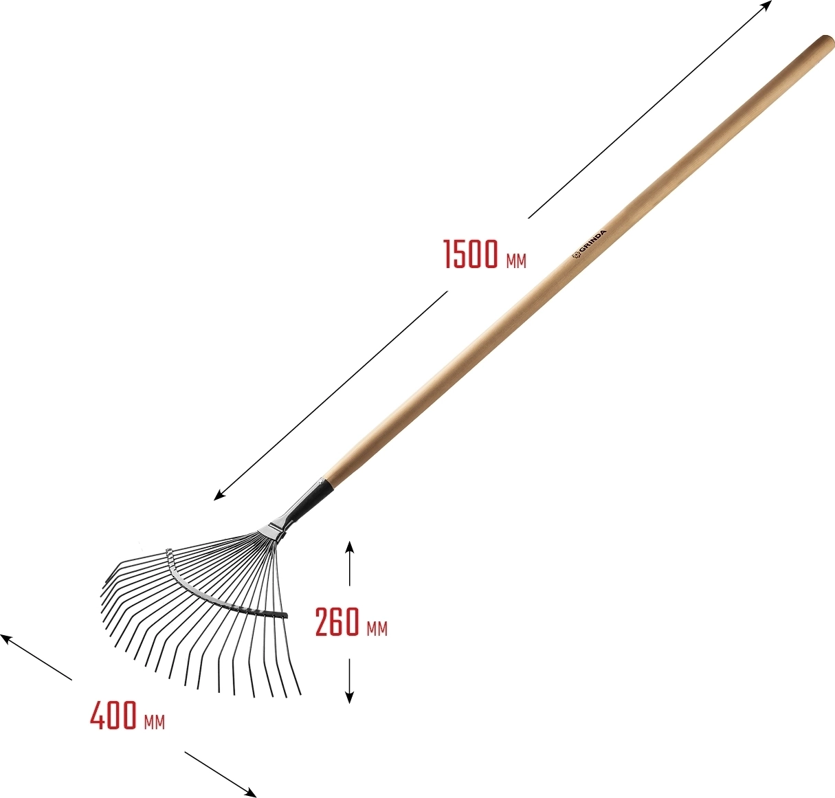 Веерные грабли GRINDA GP-22R, 400 х 260 х 1500 мм, 22 круглых зубца, стальная рабочая часть, черенок из дерева высш. сорт