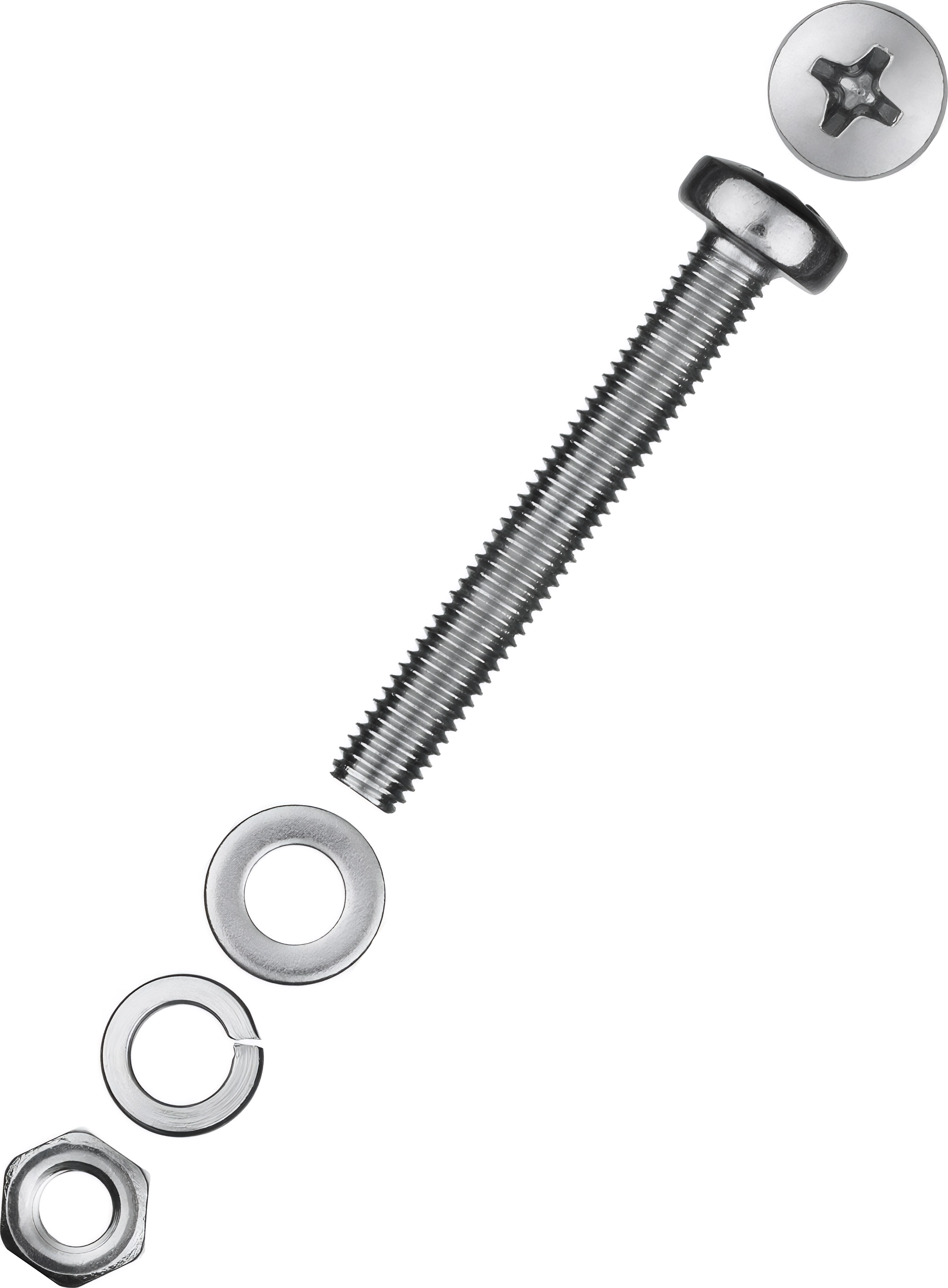 - Винты имеют полусферическую головку, что позволяет использовать шайбу для усиления давления на опорную поверхность.
