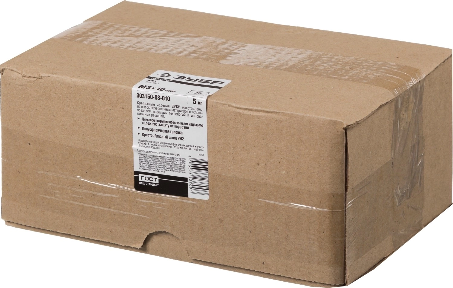 Винт с полусферической головкой ЗУБР DIN 7985, кл. пр. 4.8, M3 х 10 мм, цинк, 5 кг