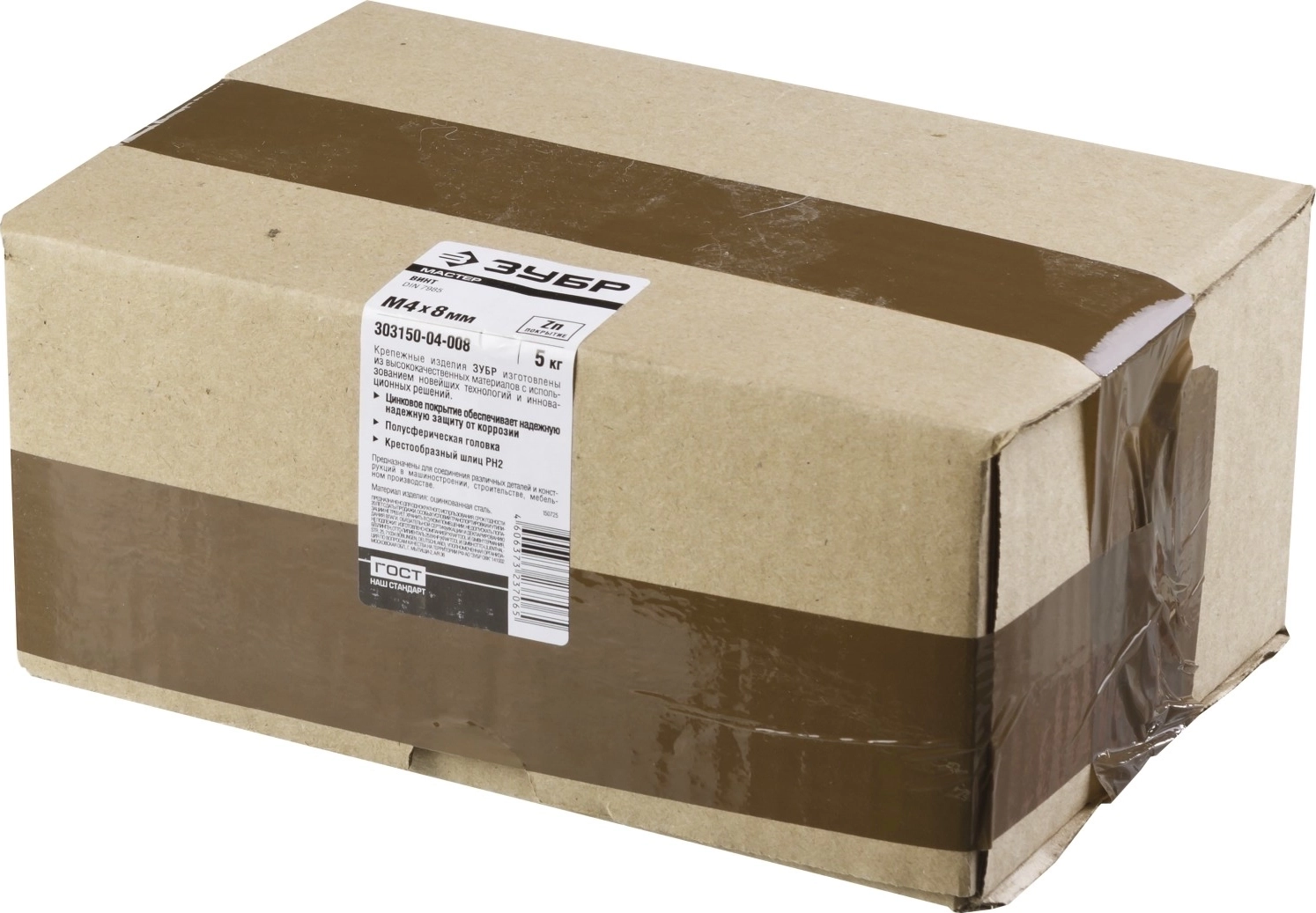 Винт с полусферической головкой ЗУБР DIN 7985, кл. пр. 4.8, M4 х 8 мм, цинк, 5 кг