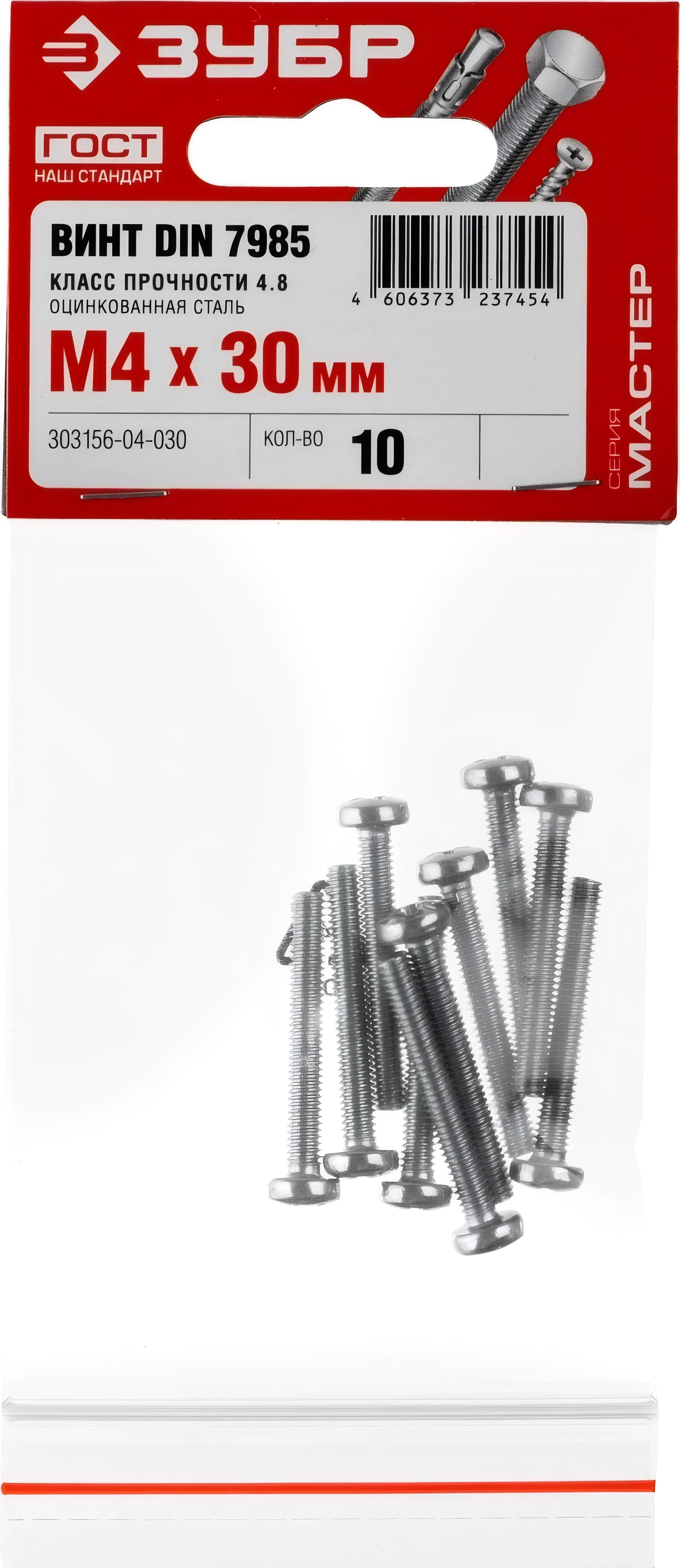 Винт с полусферической головкой ЗУБР DIN 7985, кл. пр. 4.8, M4 х 30 мм, цинк, 10 шт