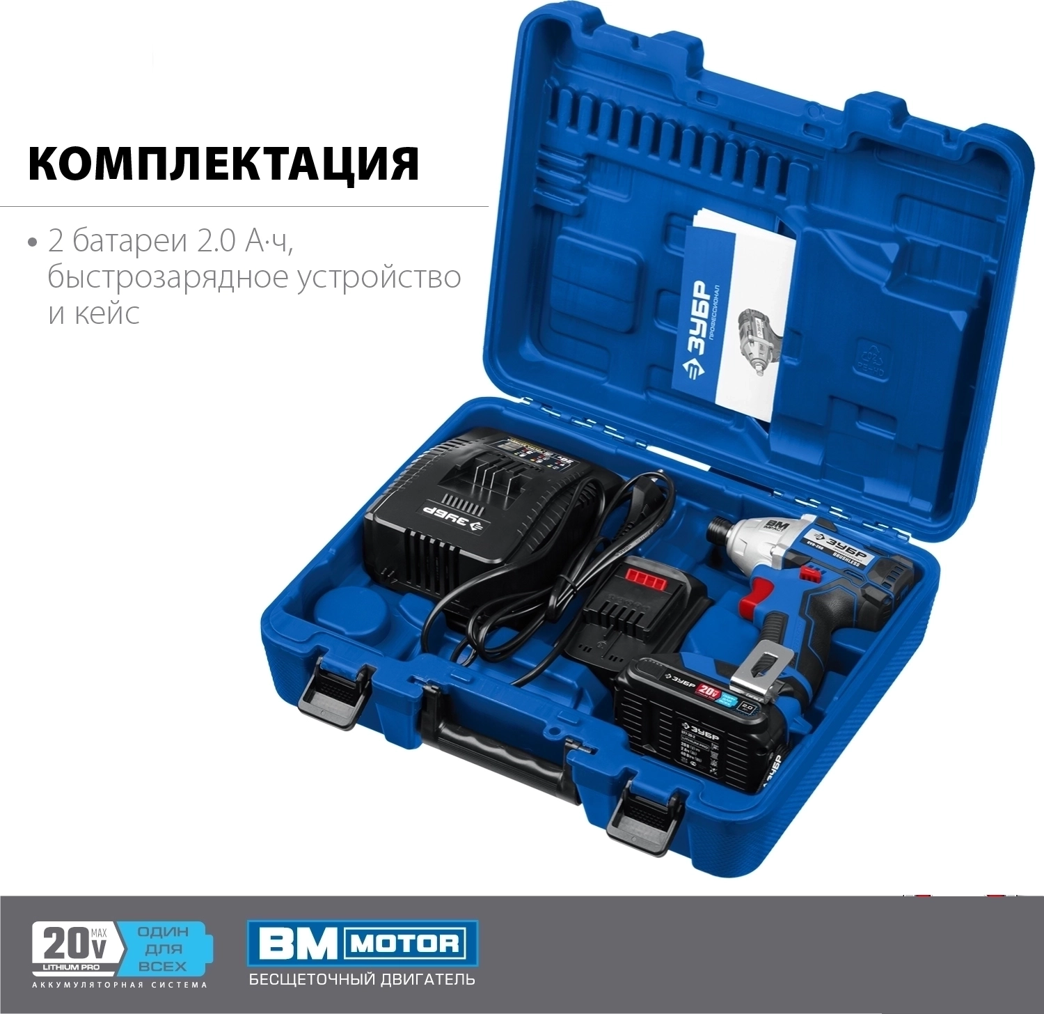 Винтоверт бесщеточный ЗУБР Т7 20 В 280 Н·м 2 АКБ 2 А·ч кейс