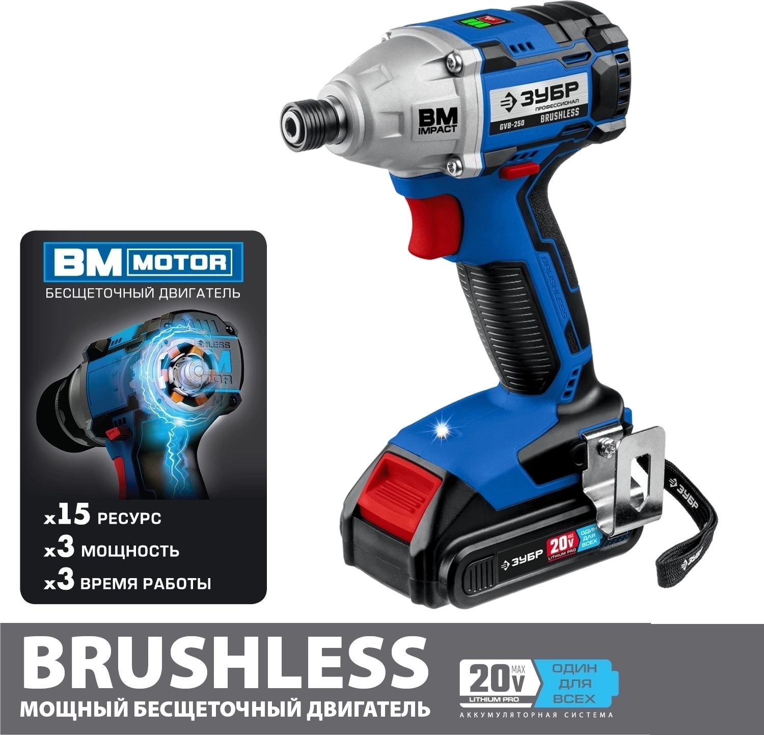 Профессиональный винтоверт оснащен BRUSHLESS двигателем, который обеспечивает высокие удельные характеристики и производительность благодаря двум батареям в комплекте. Точное управление параметрами двигателя позволяет ему постоянно работать в наиболее оптимальном режиме, регулировать крутящий момент, реализовывать дополнительные рабочие функции