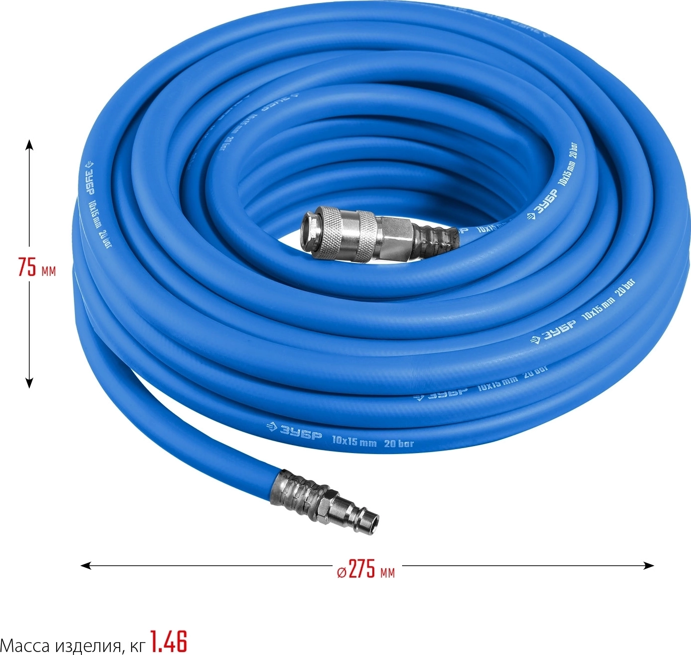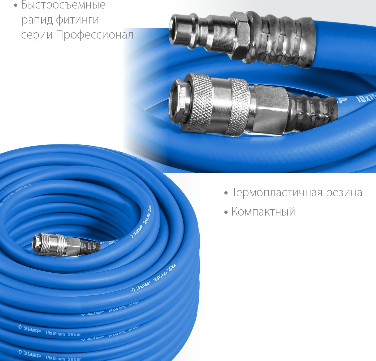 Воздушный шланг с фитингами рапид ЗУБР 10 м 10 х 15 мм 20 бар