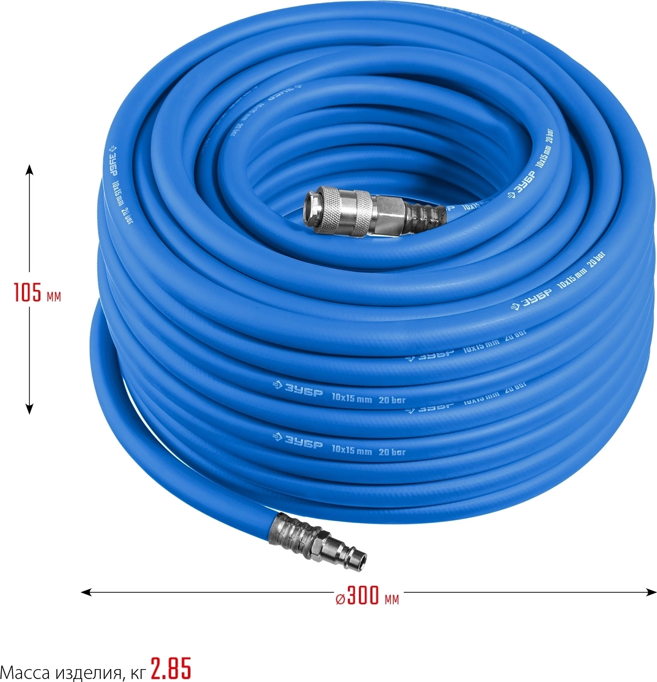 Воздушный шланг с фитингами рапид ЗУБР 20 м 10 х 15 мм 20 бар