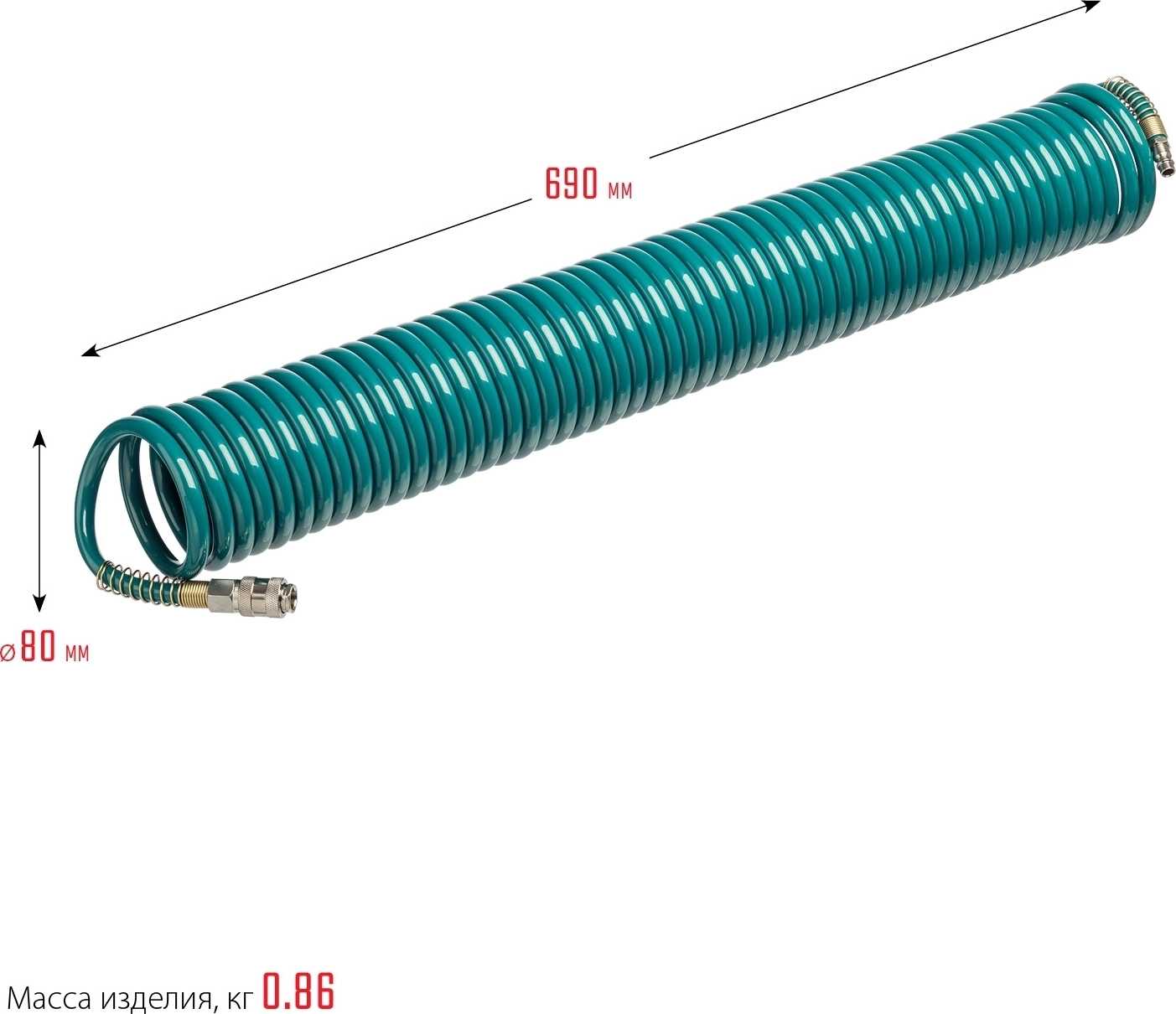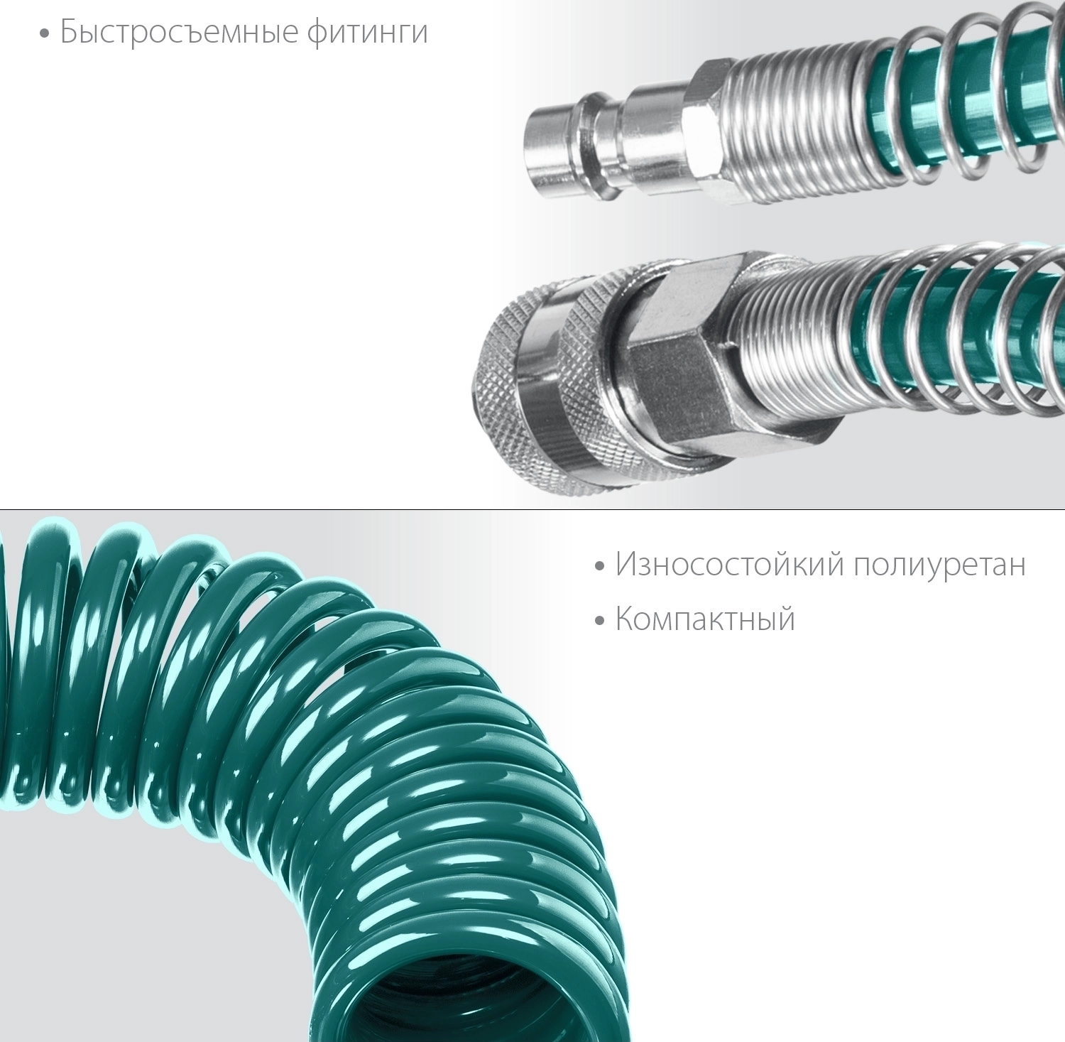 Воздушный спиральный шланг с фитингами рапид KRAFTOOL 10 м, 8 х 12 мм, 15 бар