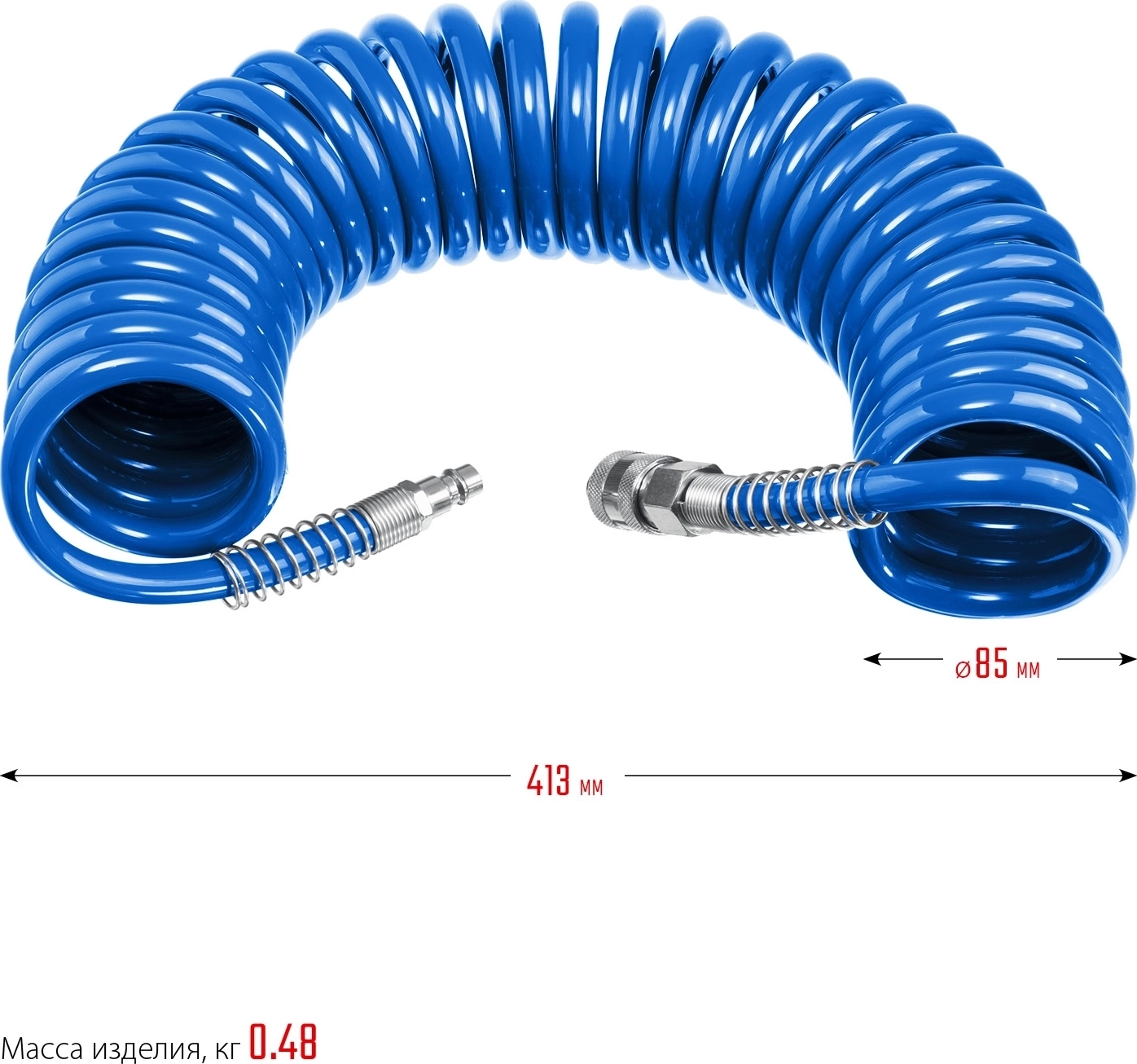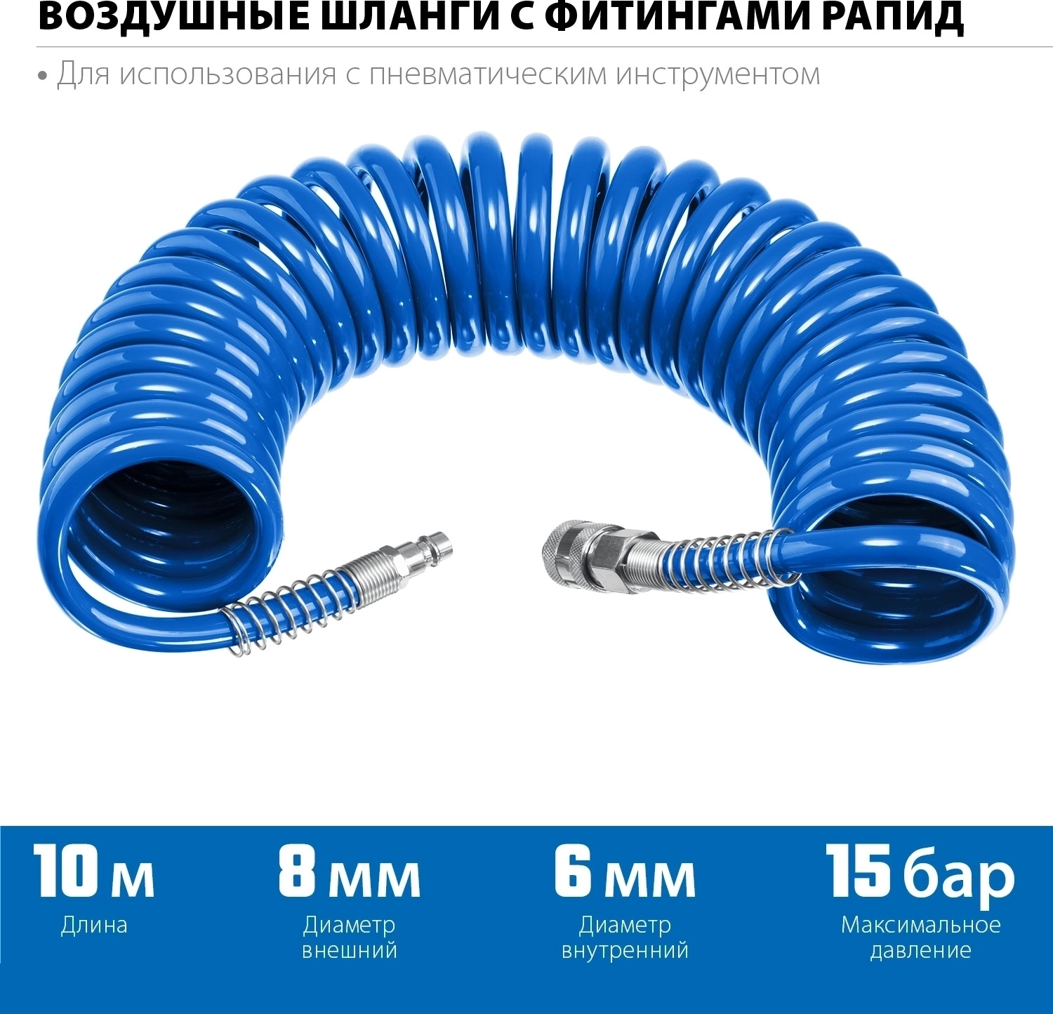 Воздушный спиральный шланг с фитингами рапид ЗУБР 10 м 6 х 8 мм 15 бар
