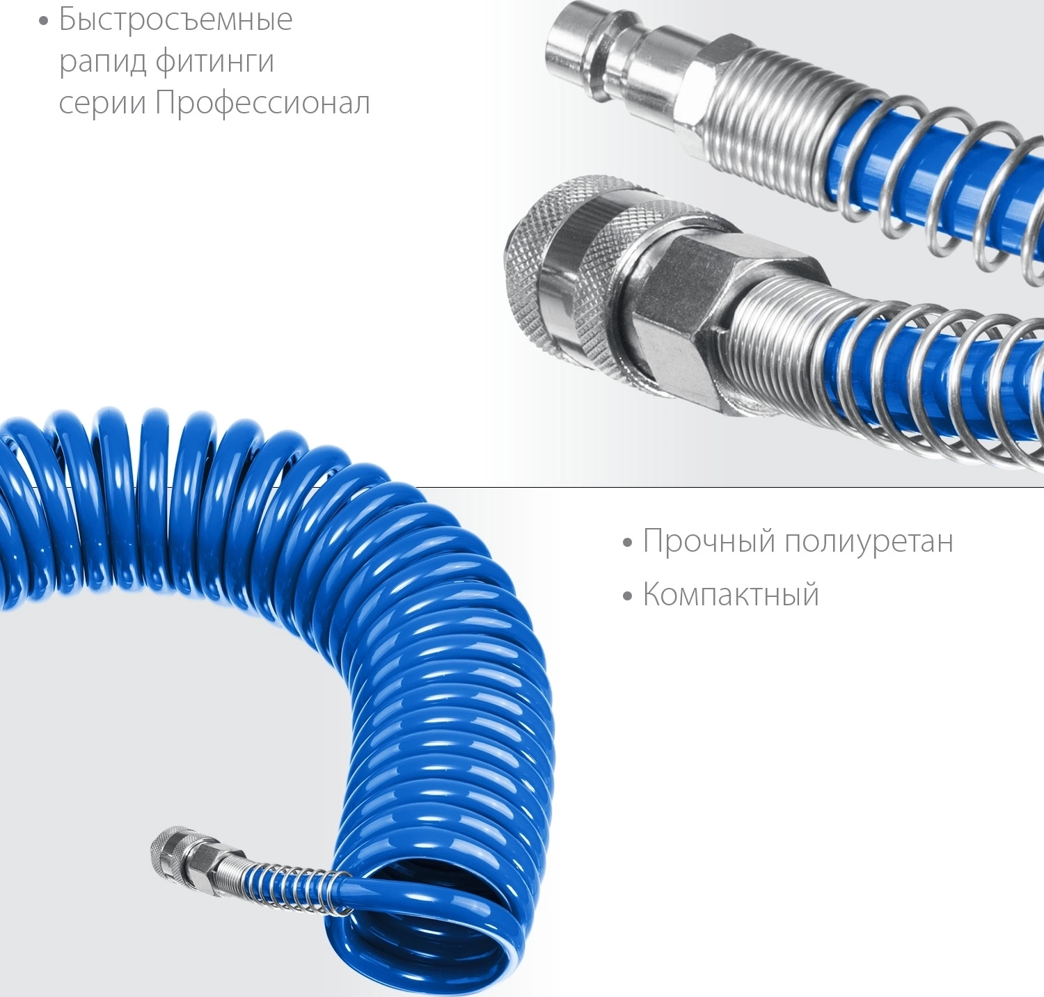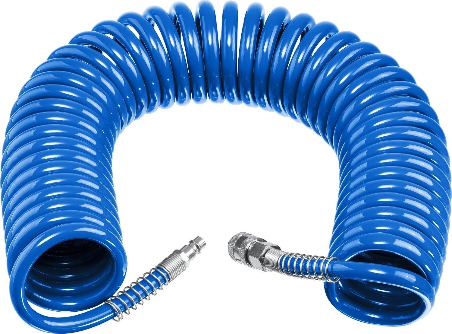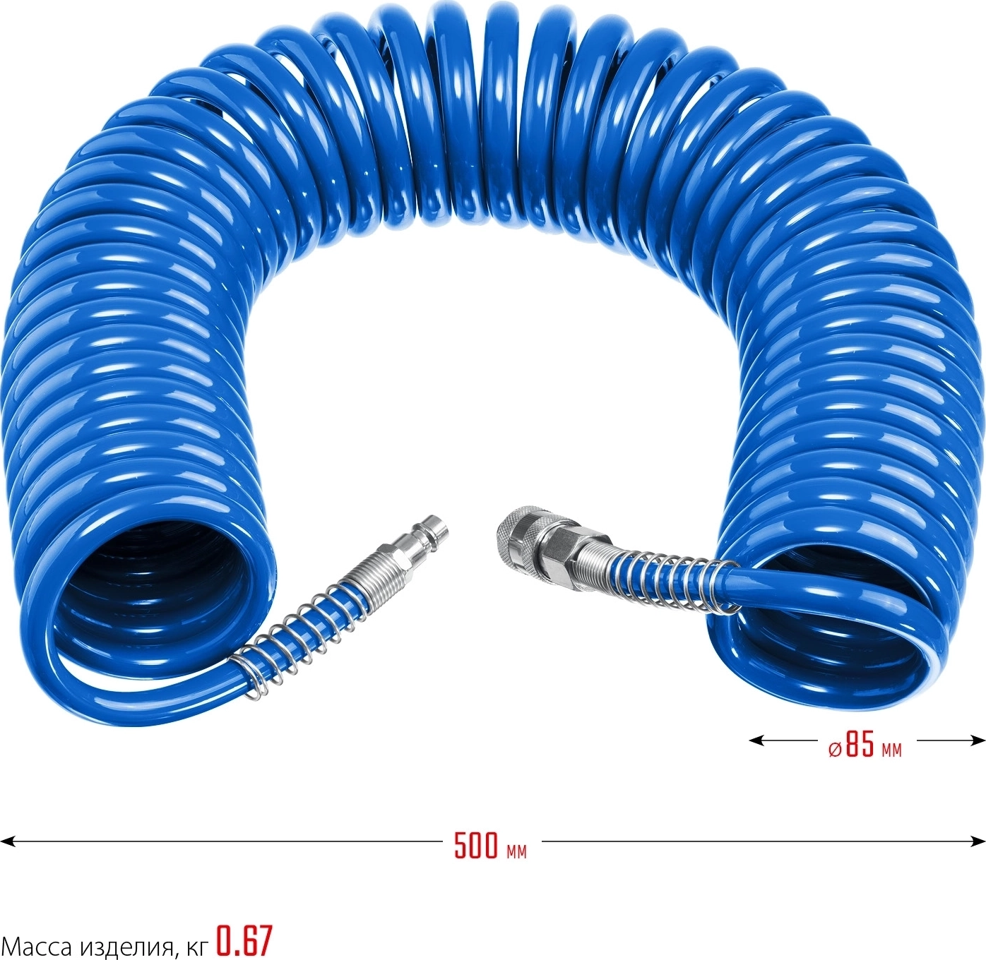 Воздушный спиральный шланг с фитингами рапид ЗУБР 15 м 6 х 8 мм 15 бар
