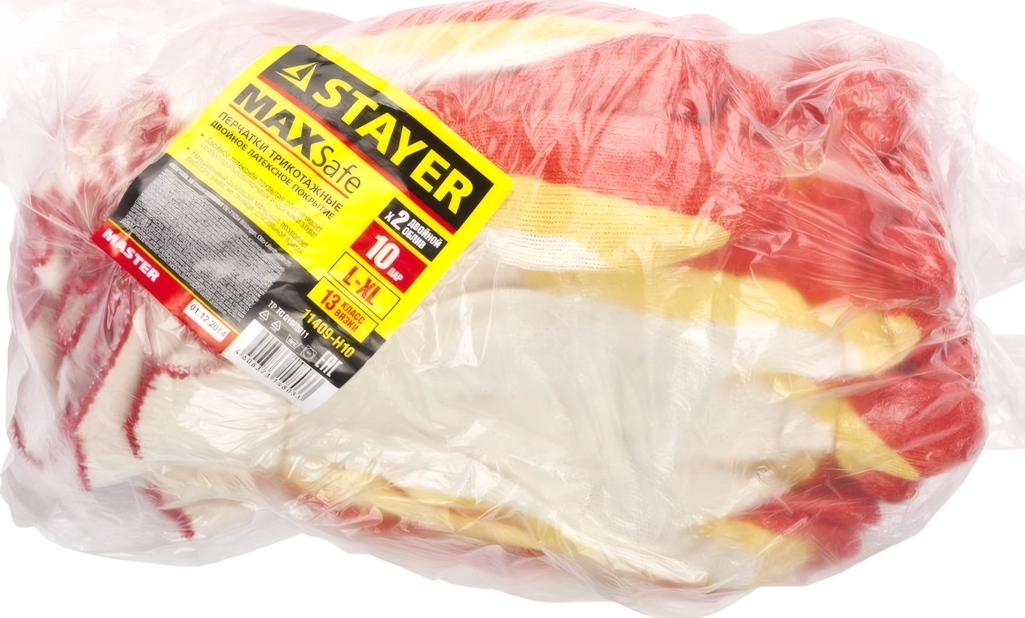Перчатки х/б с двойным латексным обливом EXPERT-2, L-XL, 13 класс, (10 пар) арт. 108853