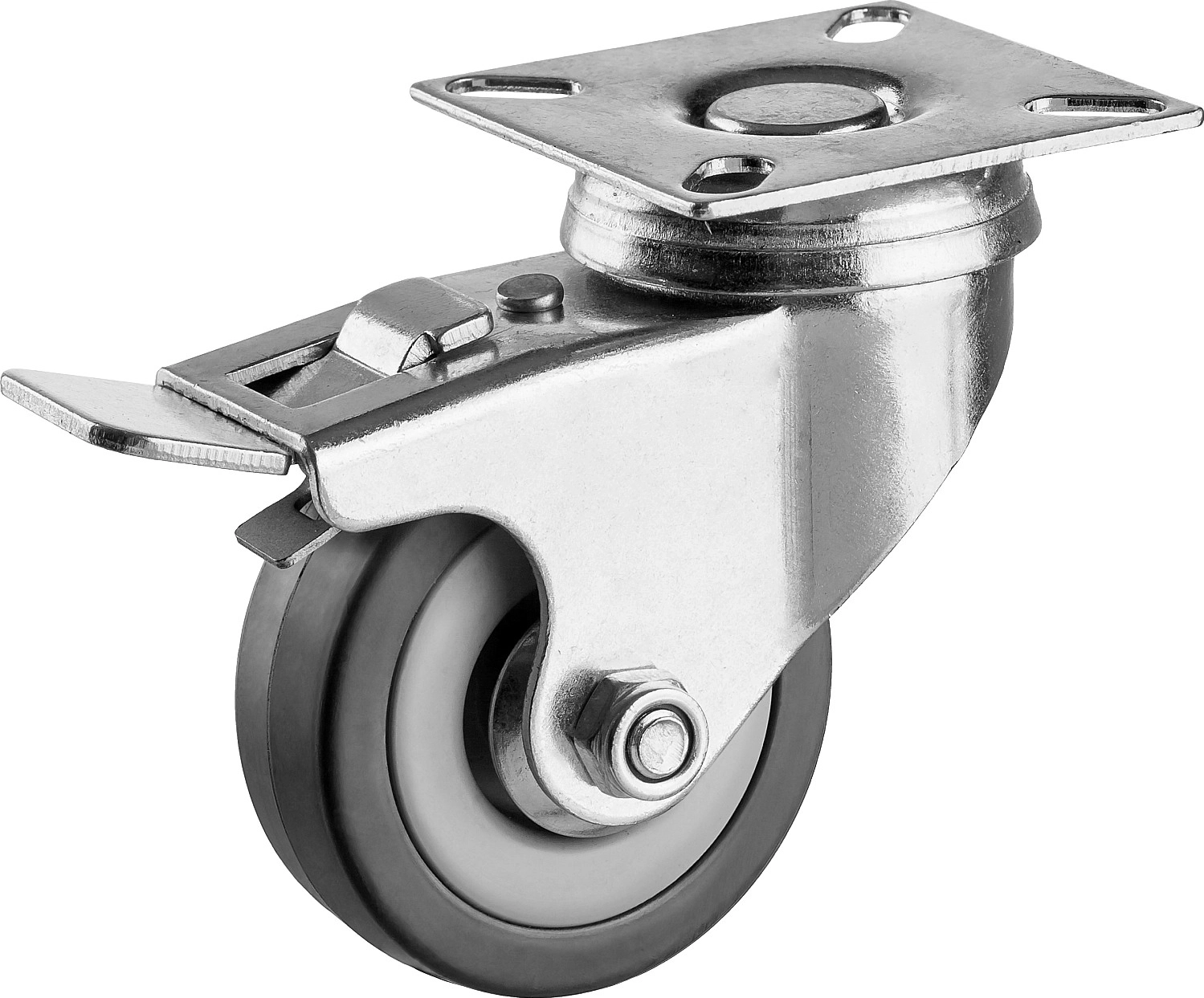 Поворотное колесо c тормозом d 100 мм, г/п 65 кг, резина/полипропилен арт. 107316
