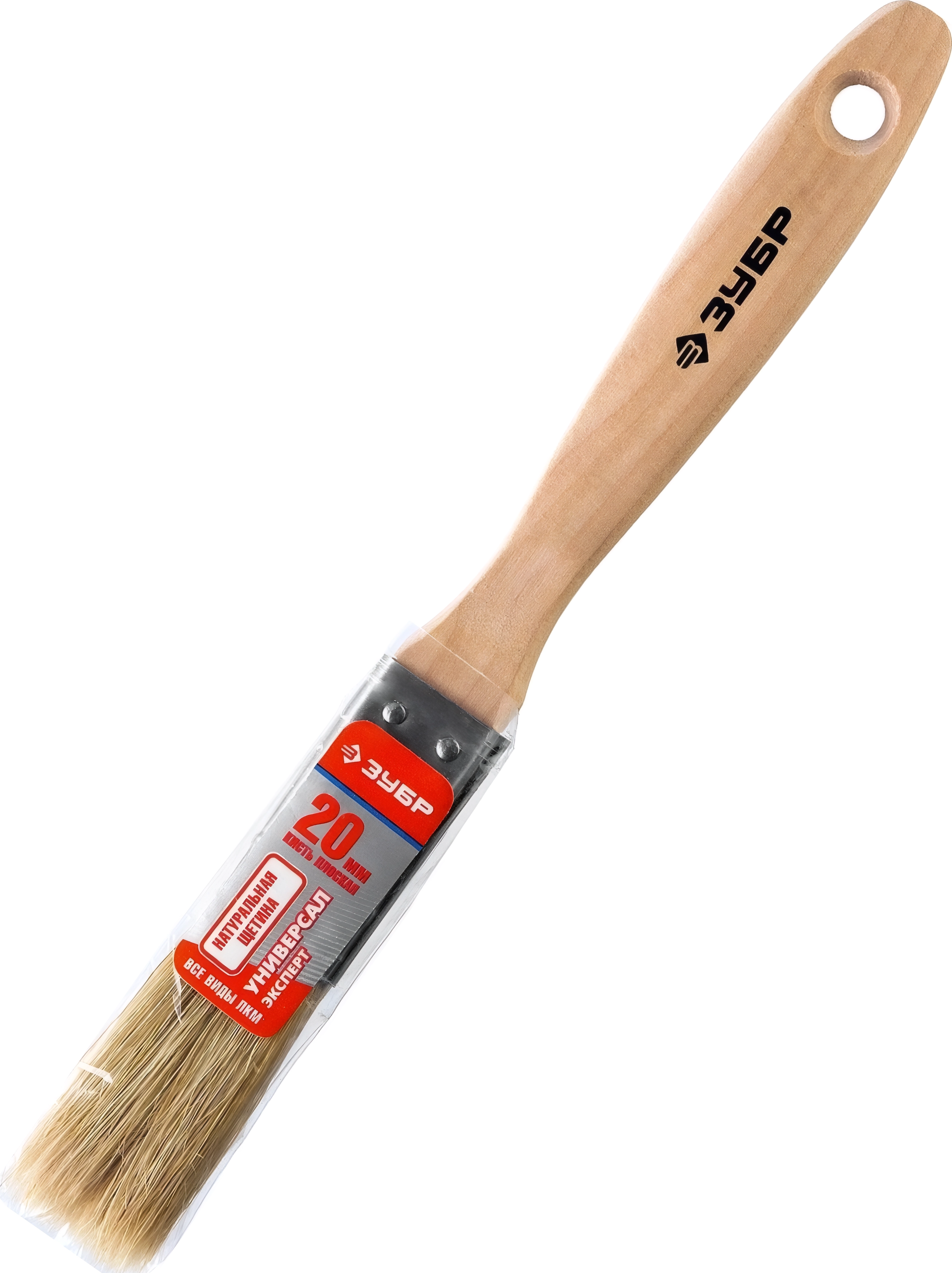 Плоская кисть ЗУБР УНИВЕРСАЛ, 20 мм, 3/4″, светлая натуральная щетина, деревянная ручка, все виды ЛКМ