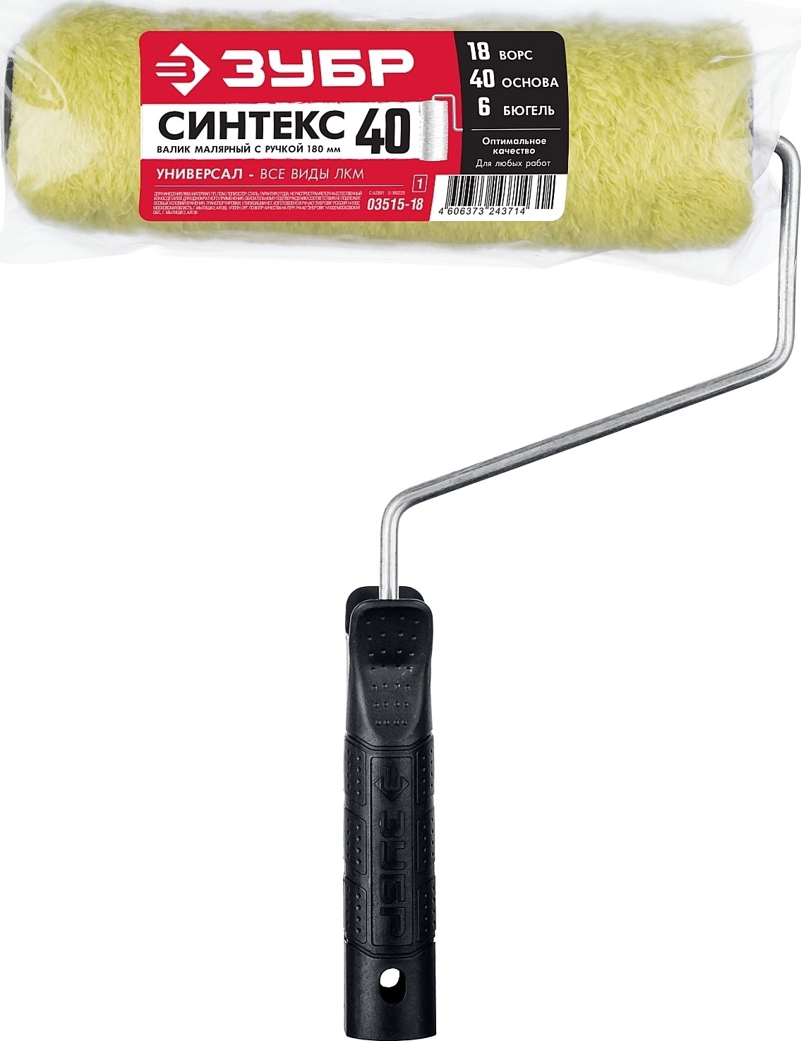 Малярный валик ЗУБР СИНТЕКС, 48 х 180 мм, бюгель 6 мм, ворс 18 мм, все виды ЛКМ