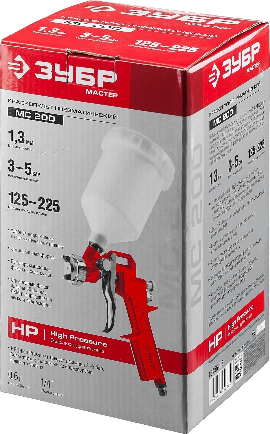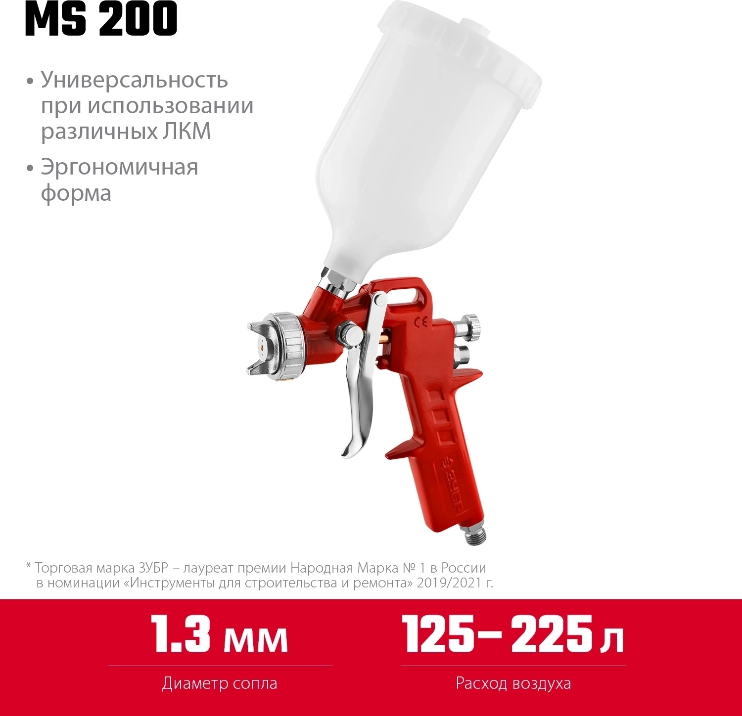 Пневматический краскопульт с верхним бачком ЗУБР MS 200, 1.3 мм